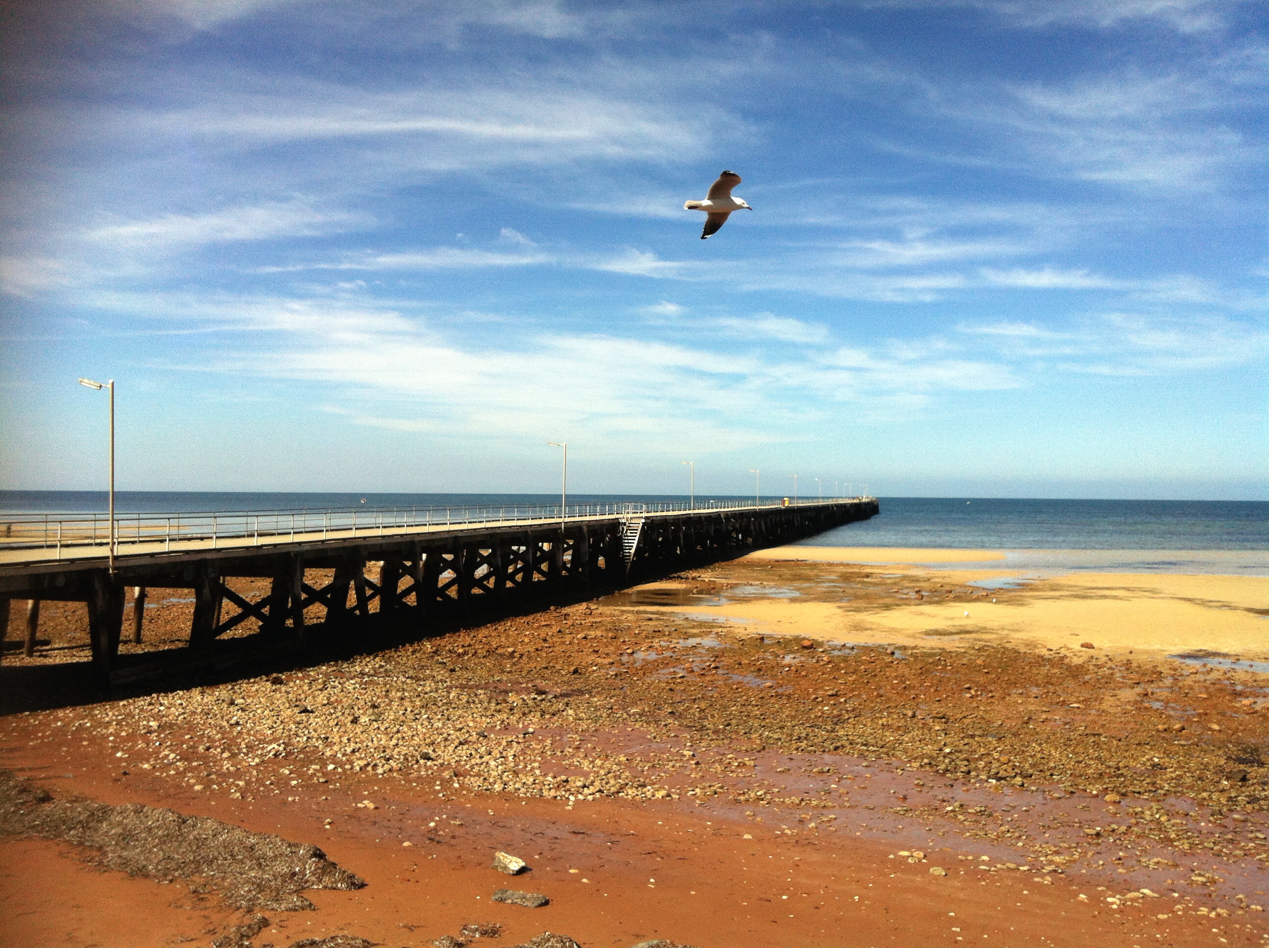 For the first time in over a week the sun finally came out today, just in time for us to pack up and leave Hahndorf!!! By the time we went and did a few jobs we finally got on the road north by 11am. We stopped for lunch at Ardrossan. We made salad wraps and explored the jetty, finding a seal swimming up and down underneath the jetty pinching all the fish from the fishermans nets, the girls loved it, Zoe named him Fred and he became her best friend…………