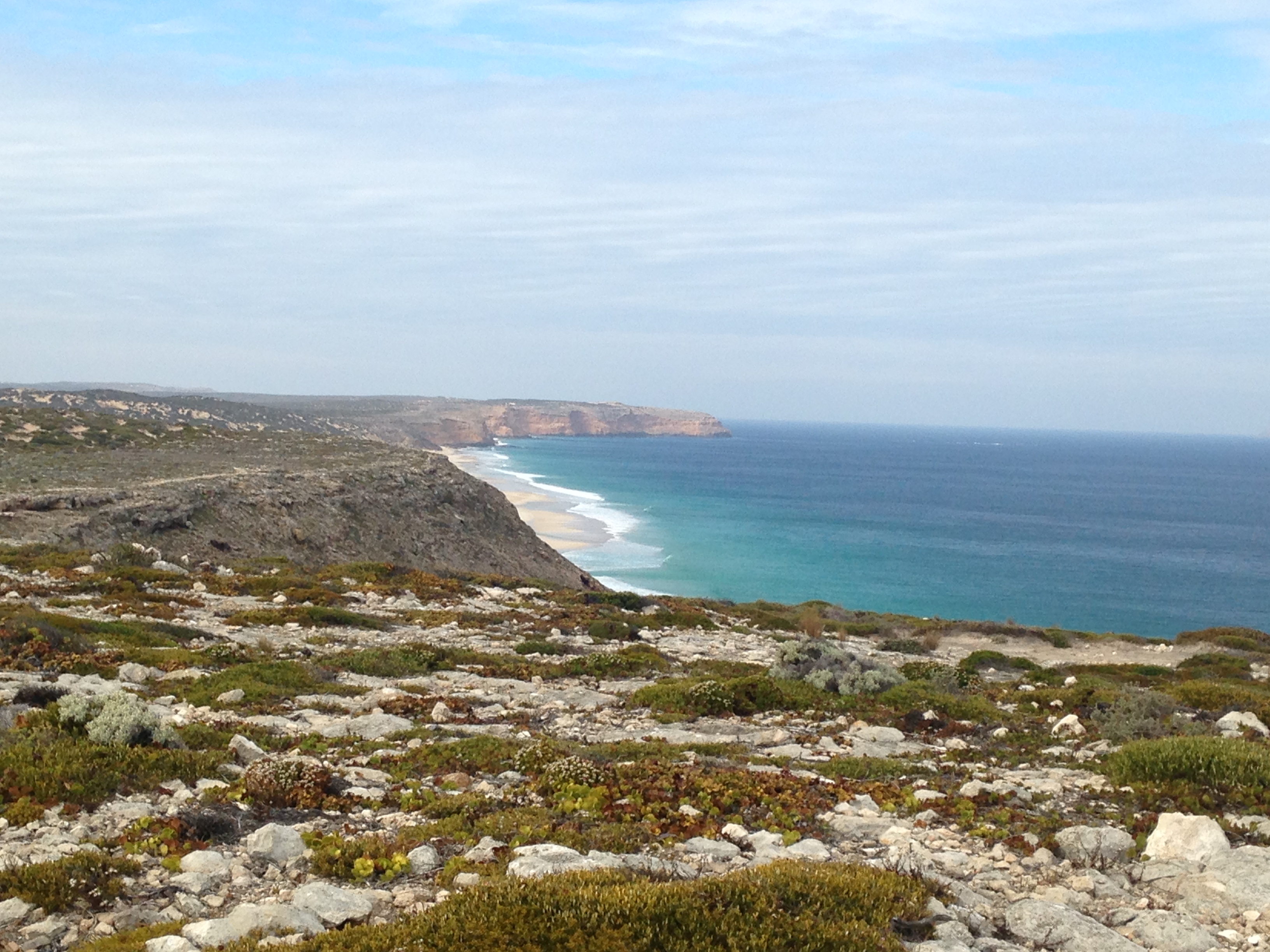 View of Groper Bay (foreground) and Pondalowie Bay (background) from the lighthouse.