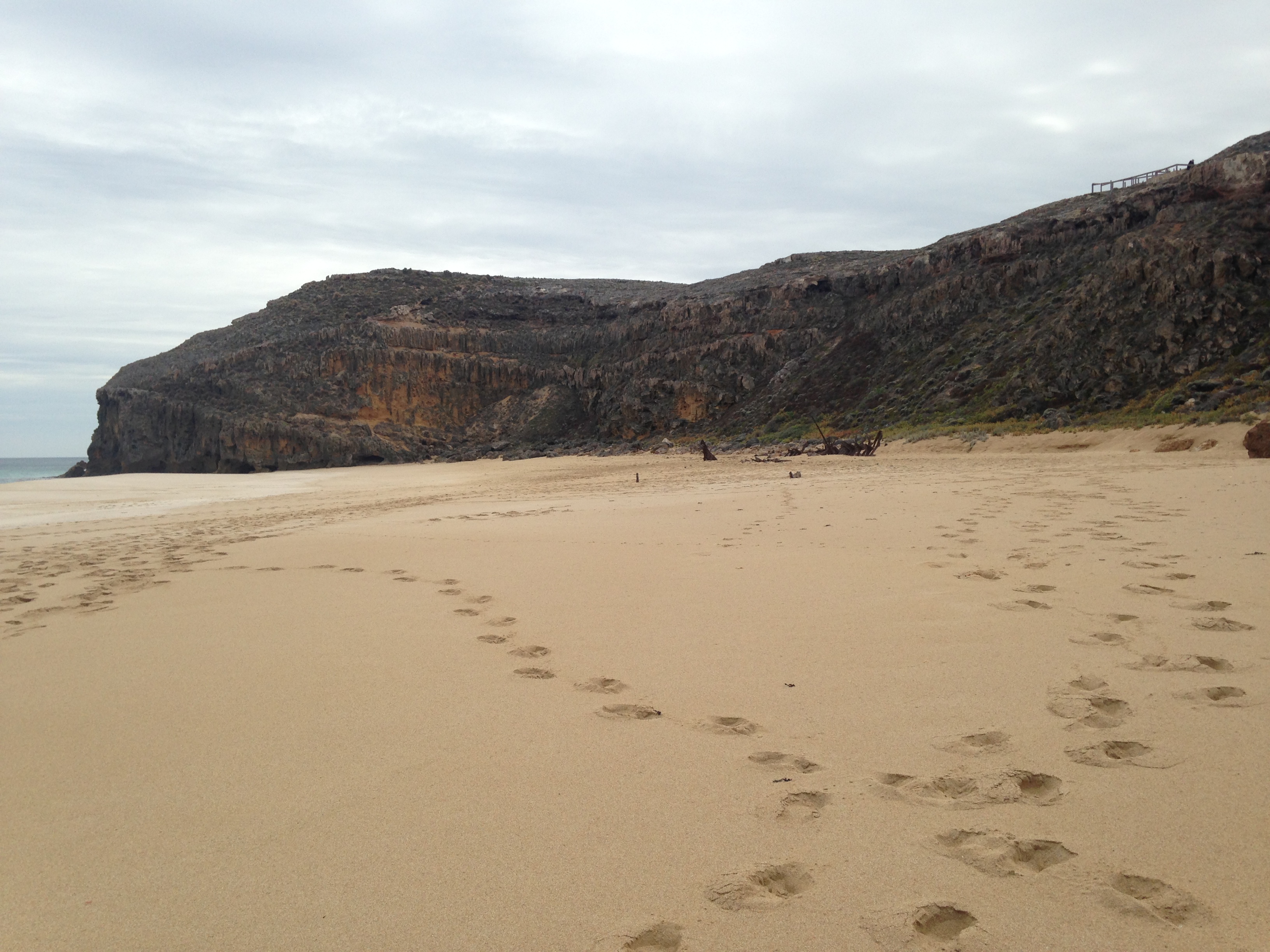 We also went and explored the Ethel shipwreck, which ran aground in 1904. Attempts to refloat the ship failed as once again the weather turned nasty, the lines broke and the ship was again driven ashore, this time further up the beach to the base of the cliffs. This time more severe damage was done and the ship was abandoned. Its quite a steep stair climb down to the beach to the wreck, with bits of steel sticking out of the sand in places.