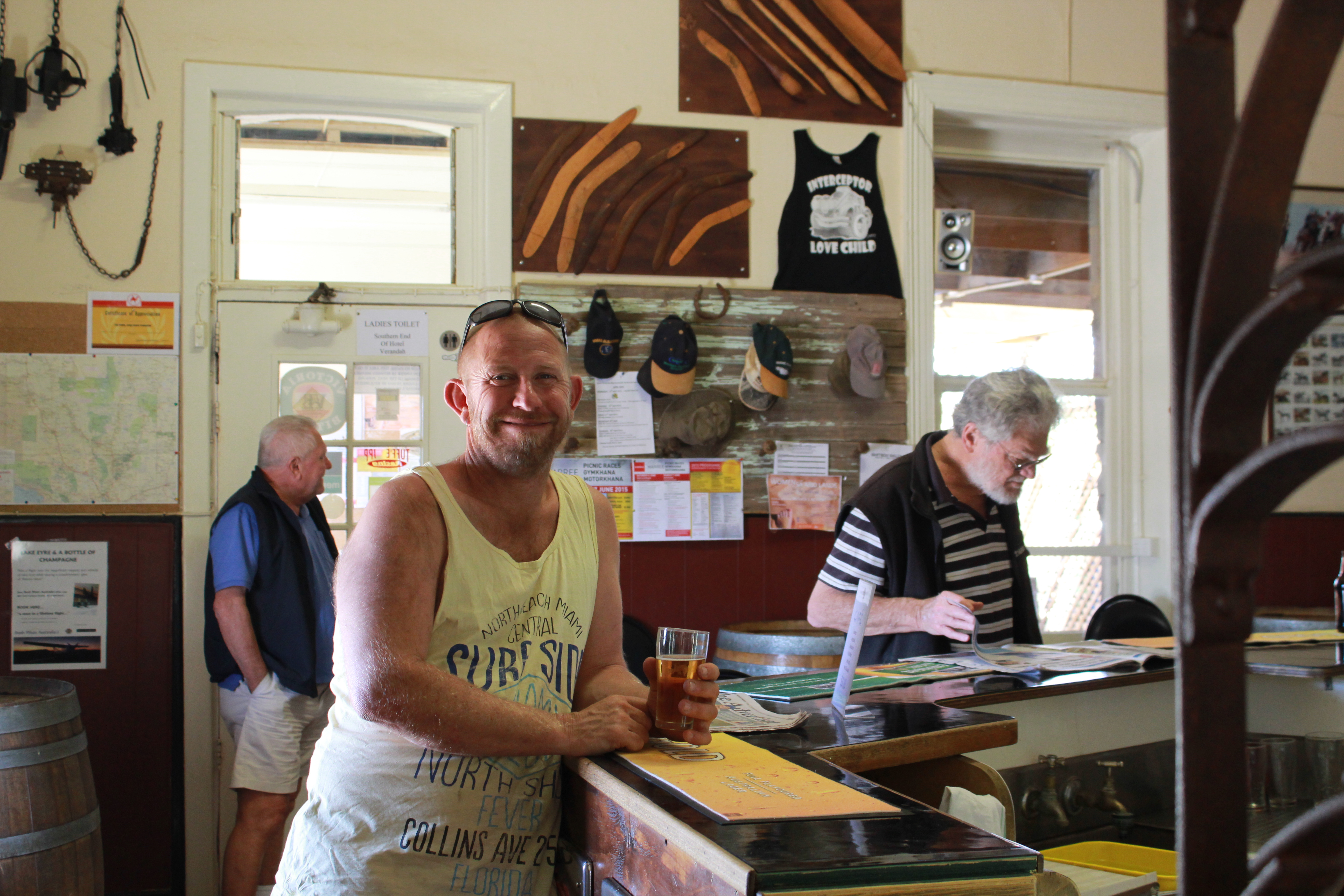 After finally beginning our ‘journey‘105 days ago back in Victoria, we headed out today agreeing that we were finally beginning our ‘adventure’!!!! We have explored a lot of Victoria and South Australia, travelling over 6,000kms, but today was the day we finally leave the black top and head into the ‘outback’ to tackle the first of many iconic must do’s around Australia, The Oodnadatta Track. Our route has us travelling from the south in Marree to the north towards Alice Springs and as custom has it we are beginning our trip with the customary beer and meal at the Marree Hotel. The Marree Hotel is a typical outback pub that holds and displays a lot of history and memorabilia , especially as it is the town where many 4wd travellers either start or finish their travels of the Oodnadatta, Birdsville, Strezlecki tracks and Simpson Desert crossing. The hotel has also set up a room known as the Tom Kruse Museum, which details the life and times of the iconic ‘mailman’ of the Birdsville Track, Tom Kruse. We spent quite a bit of time in the pub and museum, Nik especially as he is currently reading Tom Kruse’s biography, eventually we sat down and ordered our Marree Burger from the kitchen.