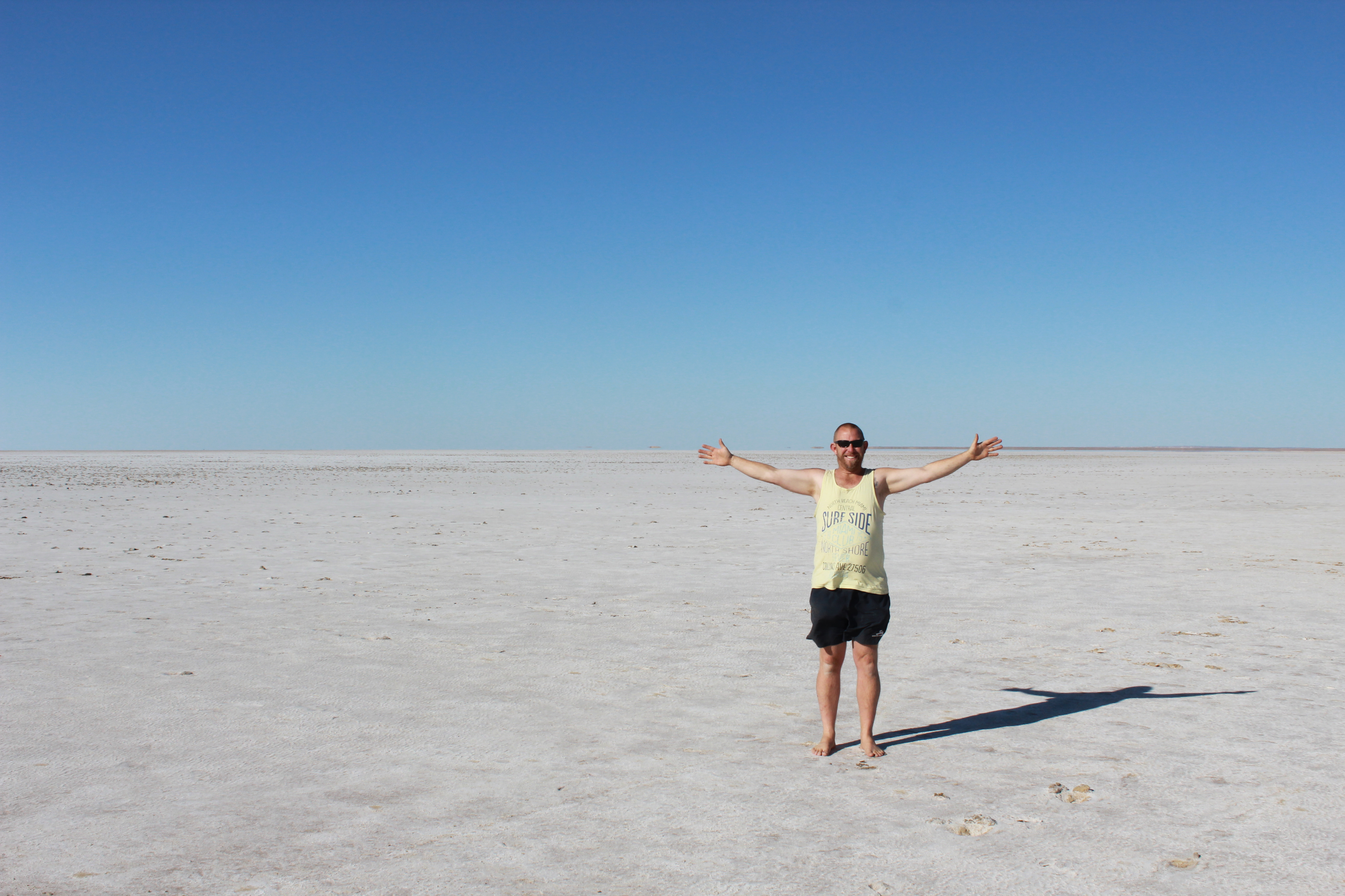 Further on down the track we stopped at the Lake Eyre South Lookout, unfortunly there was no water in Lake Eyre but the view and lookout itself were amazing, the tricks the salt pan played with your eyes led us to believe that it was full of water. The information boards at the lookout were great too giving us quite the geology lesson on The Great Artesian Basin and its unbelievable coverage and contribution to over a quarter of inland Australia. It baffles me though as to why our kids knew nothing about The Great Artesian Basin, surely it should be on the curriculum???