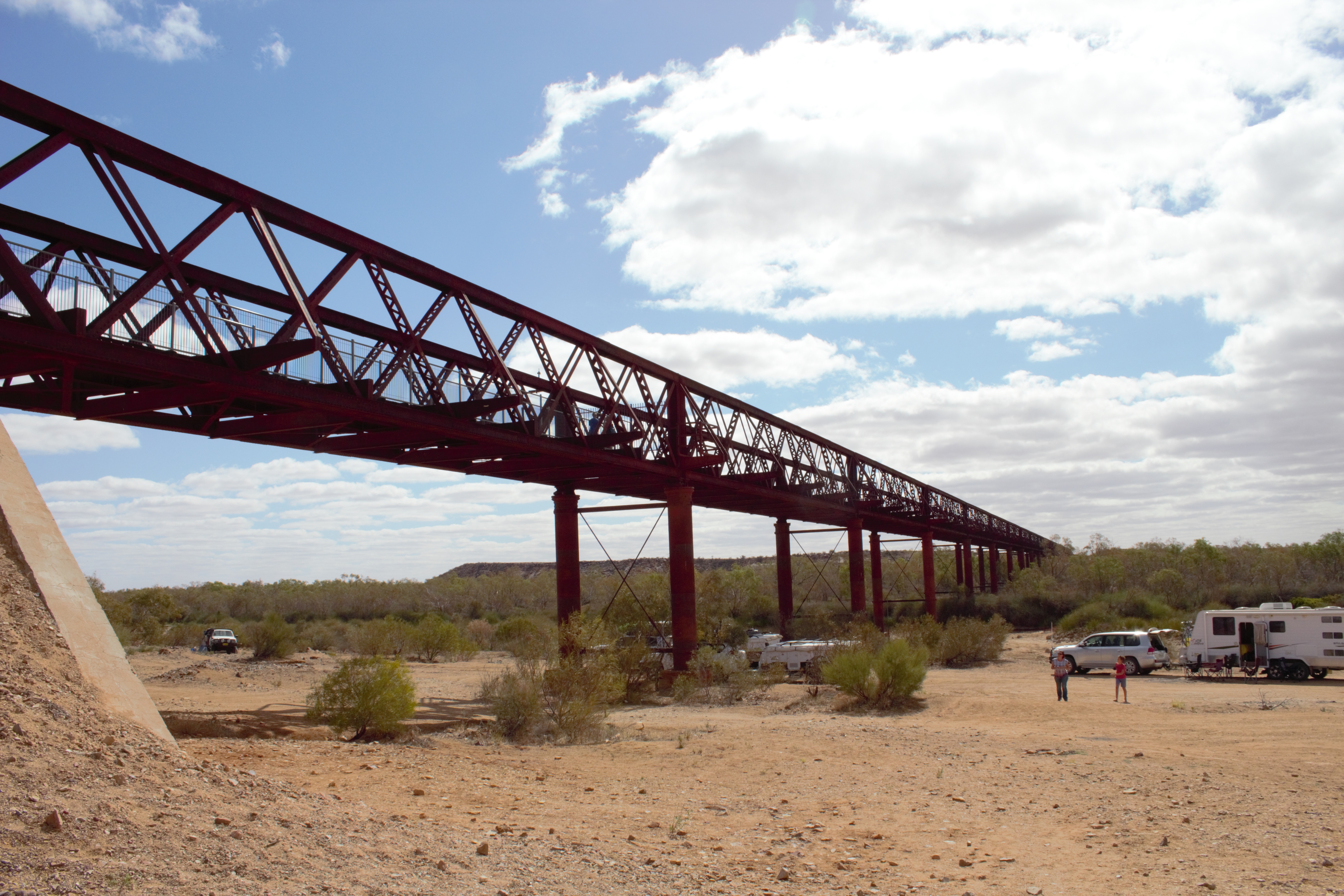 The next day we packed up and headed off for our lunch stop at Algebuckina Bridge. This bridge was built in the late 1880’s by 350 men and is made up of nineteen 30.9 metre spans, making it the largest single bridge in South Australia. We had a look around on the bridge and ate some lunch deciding that the flies were too bad to camp overnight so we continued on to Oodnadatta.