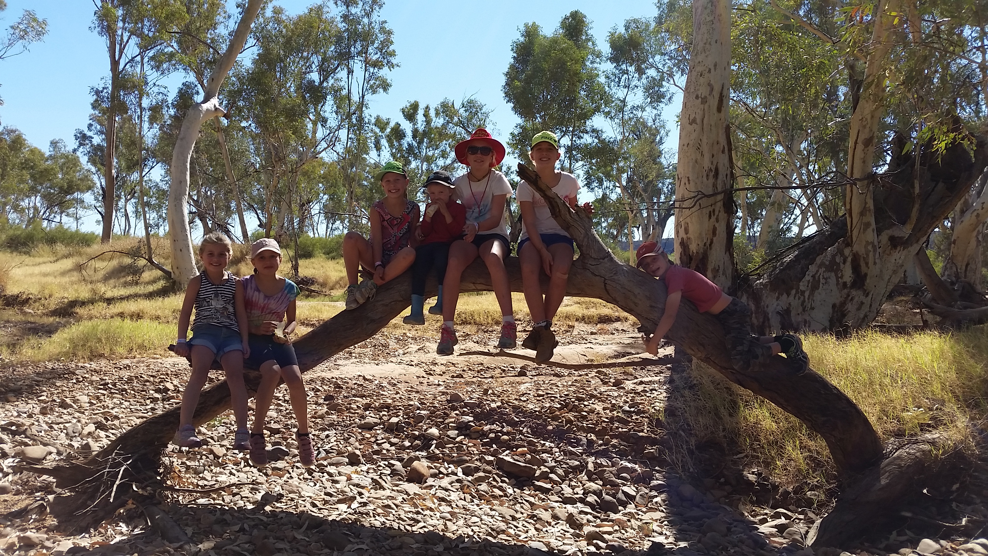 The next day we packed up and headed south along the Stuart Highway to the Ernest Giles Rd in search of the Henbury Meteorite craters. These craters were made 4000 years ago by a large meteorite travelling at 40,000 kph, which thankfully broke up and hit the earth, causing the 12 craters which range in size from 7 to 180 metres and up to 15 metres deep. A large 44kg fragment of the meteorite was recovered and is proudly on show at the Spencer and Gillen Museum in Alice Springs. With another geology lesson under our belt we headed back up the Stuart Highway to Owen Springs where we set up camp at Redbank campsite. This campsite was on the river with no facilities and not many people, which was lovely for a few days of relaxation and schoolwork.