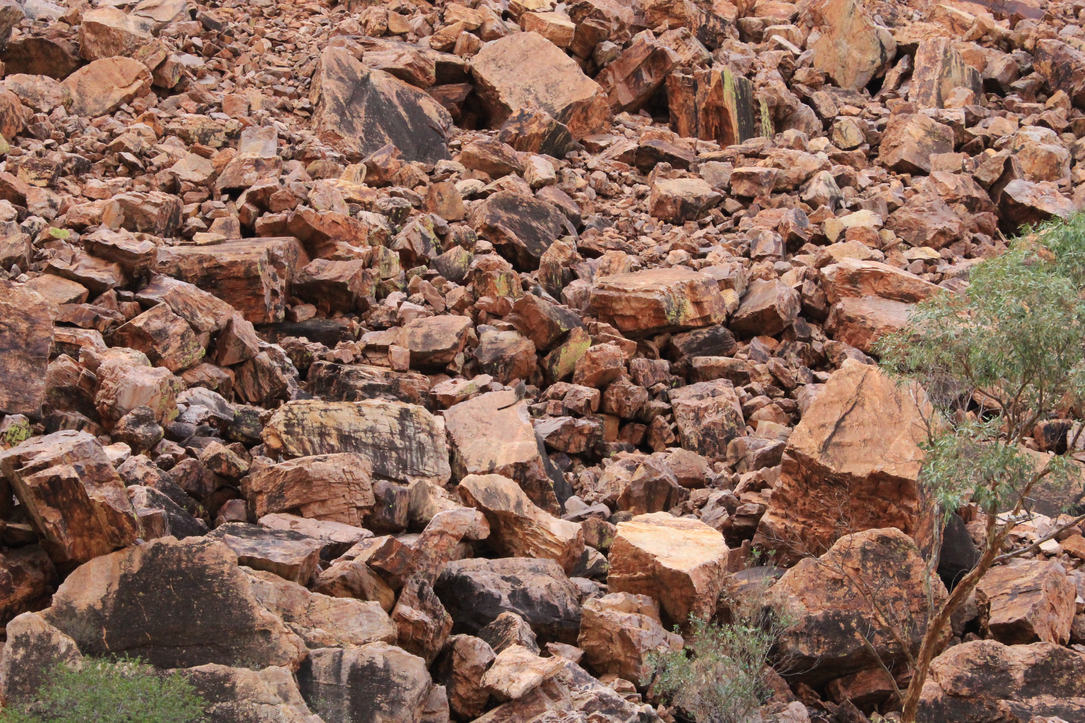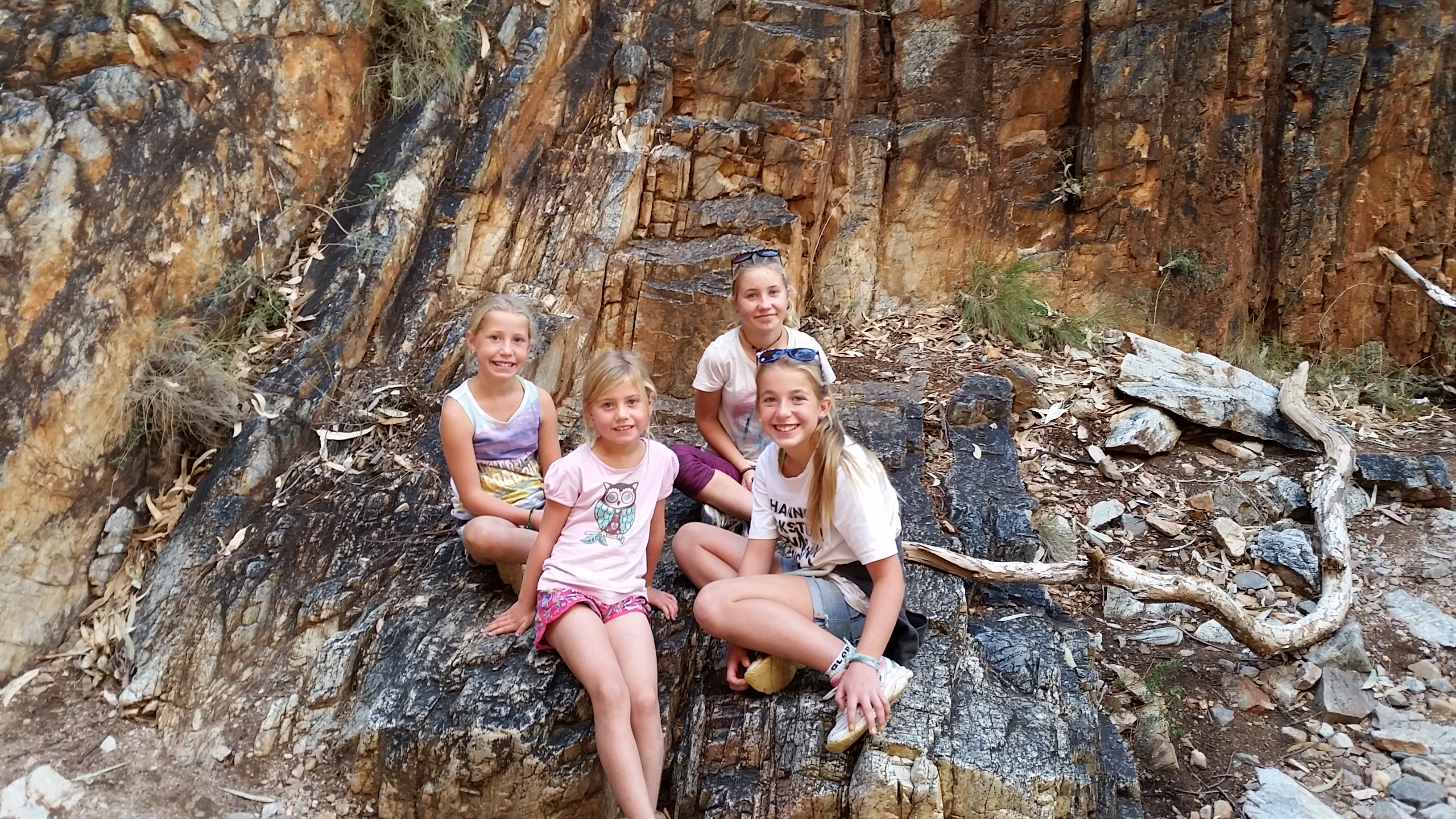 On the Monday morning we packed up and set off early along Larapinta Way, our first stop was Simpson’s Gap which was only about 15km out of Alice. Simpsons Gap was originally named Simsons Gap however somewhere along the way a ‘P’ was added and has now stuck!!! Interestingly the amazing red color of the cliffs is actually not the real color of the rocks, the rocks are actually white in color and over millions of years have been stained red due to being ‘rusted’ from the iron rich soil. An algae on the rocks combines with the dust from the soil and adheres to the rock creating the red covering. All the rocks in the river however are the original white color as when the floods occur the water washes away the algae stains. Over Winter throughout all the parks the rangers conduct talks about each attraction with the Simpsons Gap talks being held at 10am on Mondays and Saturdays. Fortunately today was Monday and fortunately we made it to the Gap by 10am to have our own private ranger talk by Ranger Kaitlin as we were the only ones waiting for her. All the other visitors/ walkers were quickly walking in and then out and racing onto the next attraction!!!!! We however had plenty of time and we really enjoyed Kaitlin’s talk and guided walk of the Gap, explaining what plants were what and how the surrounding ranges were formed. We were very proud when the girls were able to identify a few of the plants before Kaitlin could tell us what they were, especially Abby who was able to point out the bush that the Aborigines used to make their spears. At the end of the guided walk we were able to see quite a few Rock Wallabies and also asked Kaitlin quite a few questions, I don’t think she wanted to leave us as you could tell she had a great passion about her job and she was enjoying sharing her many stories with us!!!
