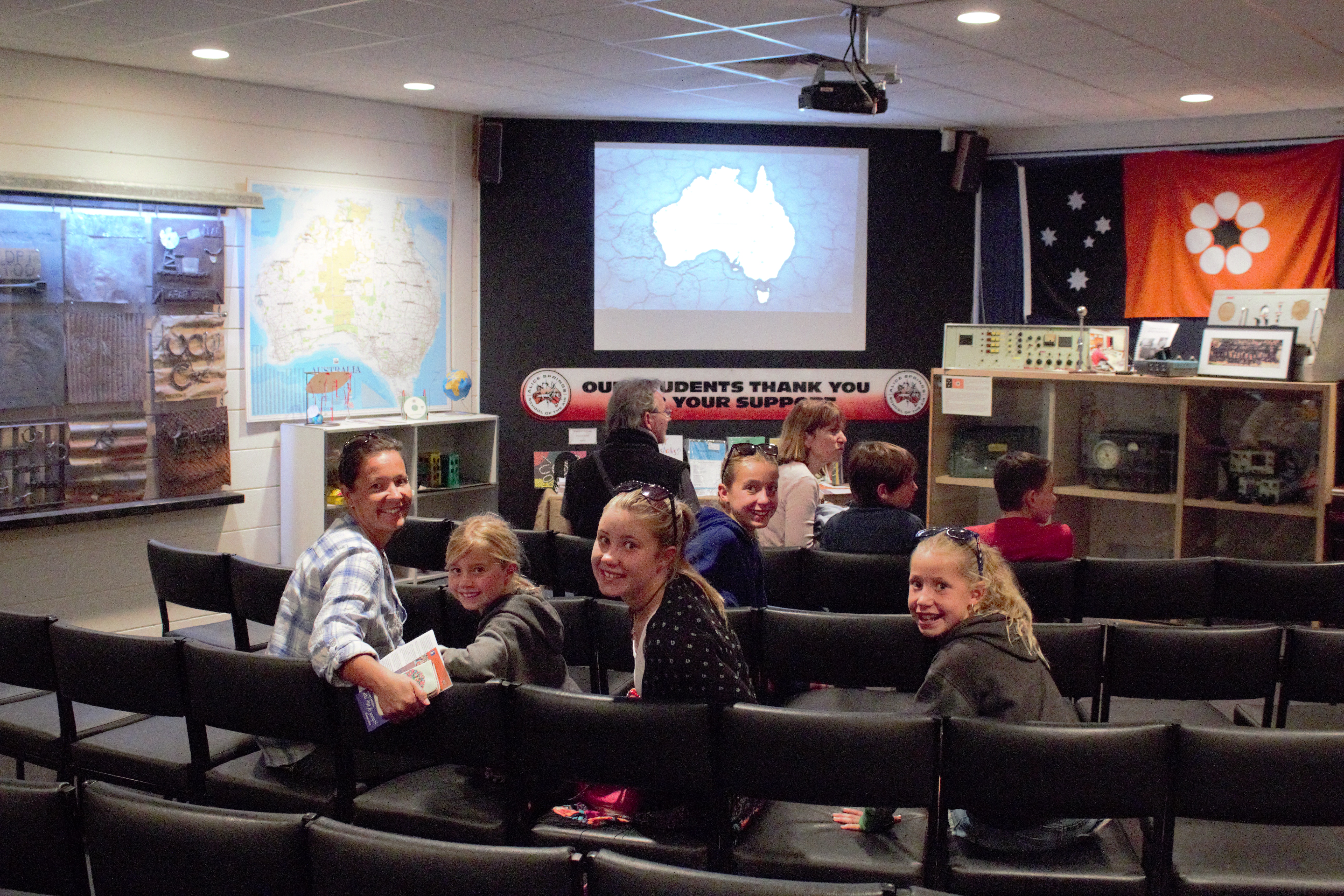 On one of the walls was a map of the Northern Territory with the pictures and names of all the kids attending the school, they were all over the map, however it was great that our kids pointed to a few of the kids and told the tour guide that they had met and played with them during our stays. The lesson we were watching was grade 1 so you can imagine it didn’t really hold our kids attention so we meandered around for a while firing questions at the guide and then sat and watched the documentary. We learnt that whether there is a child or multiple children from a station or community doing School of the Air, the school supplies absolutely everything to the family, from the schoolwork, art supplies to the whole satellite dish set up, with it costing around $10,000 per set up. We were then surprised (well perhaps not really considering my experience as the kinder treasurer) that the school only receives the same amount of funding that any other government public school would, so hence the reason why they fundraise so much. I suppose fortunately they at least have more publicity, opportunities and ‘big name’ donors than other public schools do who also need to raise copious amounts of money to simply stay open…. But we had a great time there and we made our donation (which probably covered postage for one child’s schoolwork). It wasn’t a highlight for the kids though, but then again anything that has the word ‘school’ associated with it makes their eyes glaze over……….