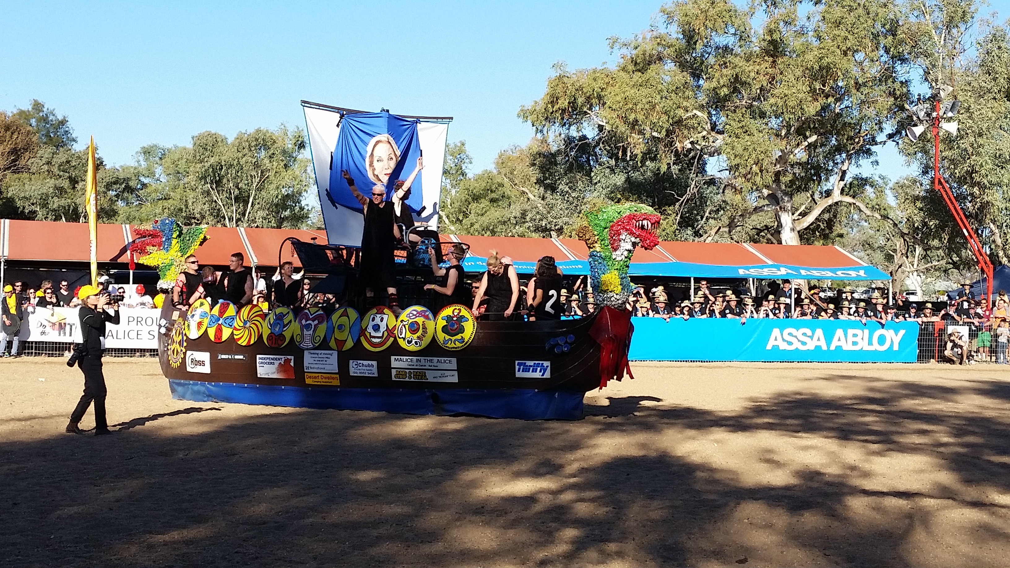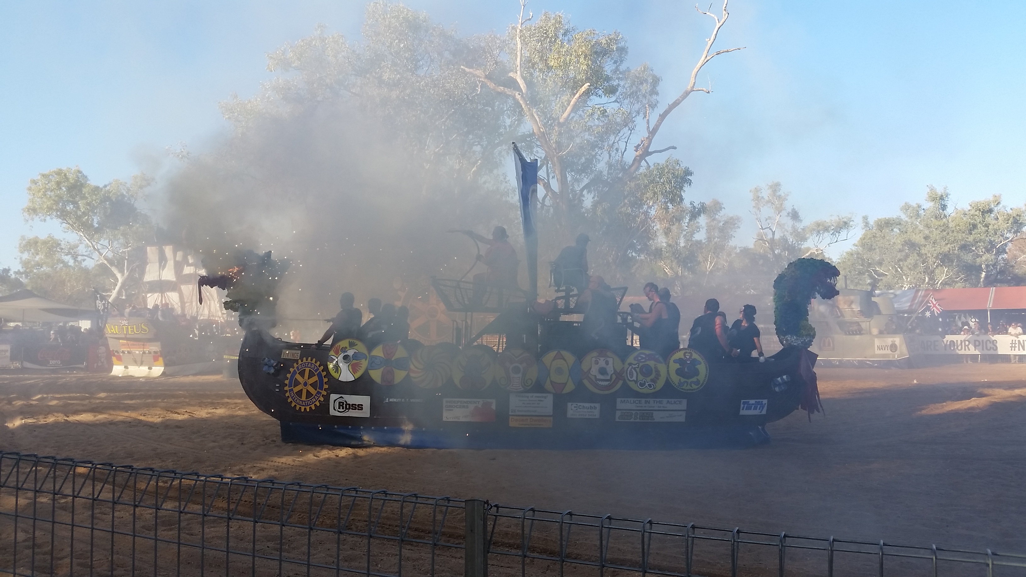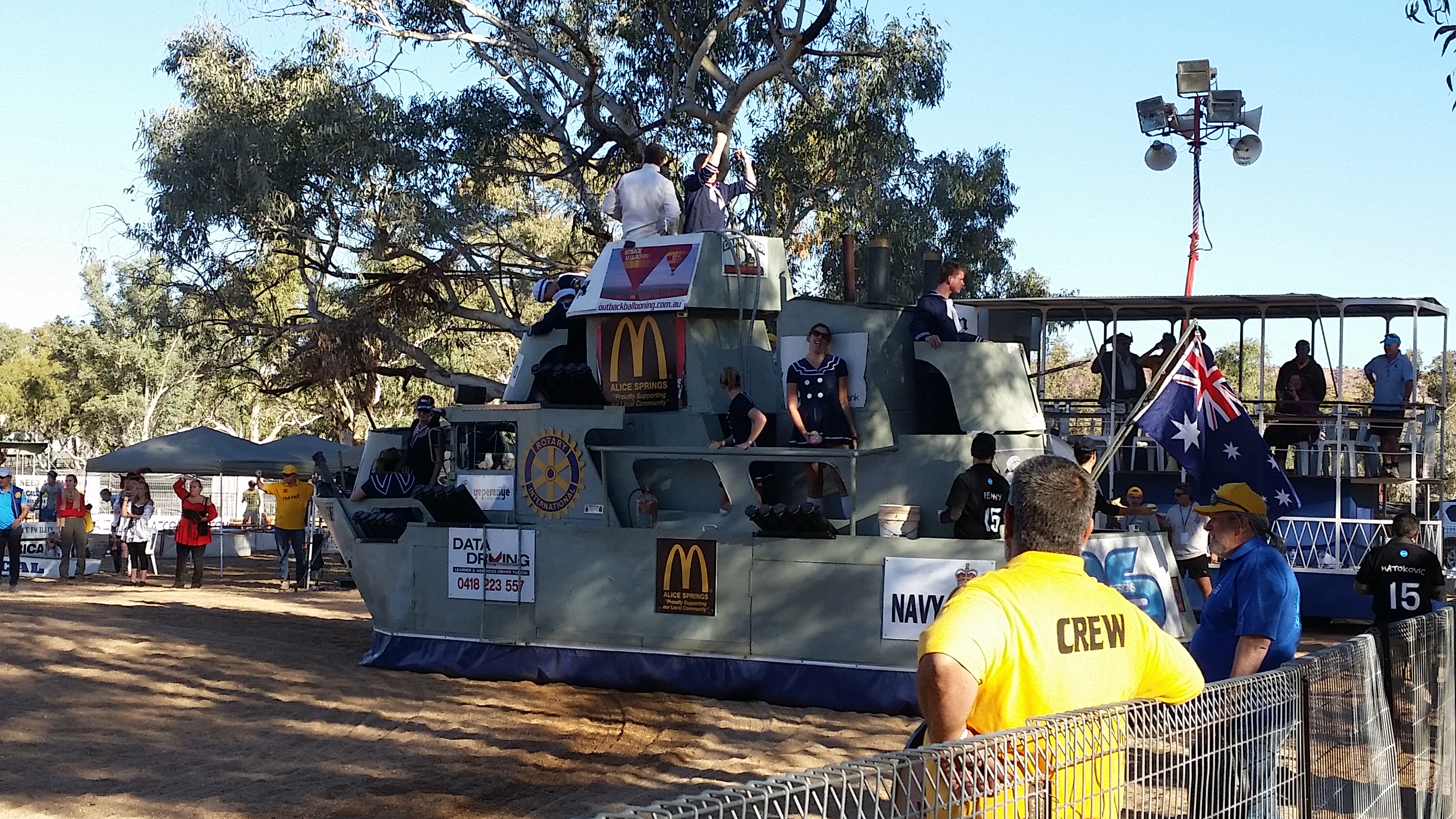 We had noticed all day that there were people dressed up as either a viking, pirate or a seaman from the Navy. They had been heckling each other all day  and trying to get each other with water pistols etc, and trying to get the crowd to cheer for their team. From my investigations on the day, we assumed that each of these ‘teams’ were part of each of the 3 Rotary clubs in Alice Springs that organise and run the whole regatta. I also noticed there was a strong contingent of defence members and their families, both Australian and US, which after my further investigation, I found out that they were all mostly stationed at Pine Gap, a jointly run Australian and US global surveillance facility about 18km south of Alice Springs, or so they say…………