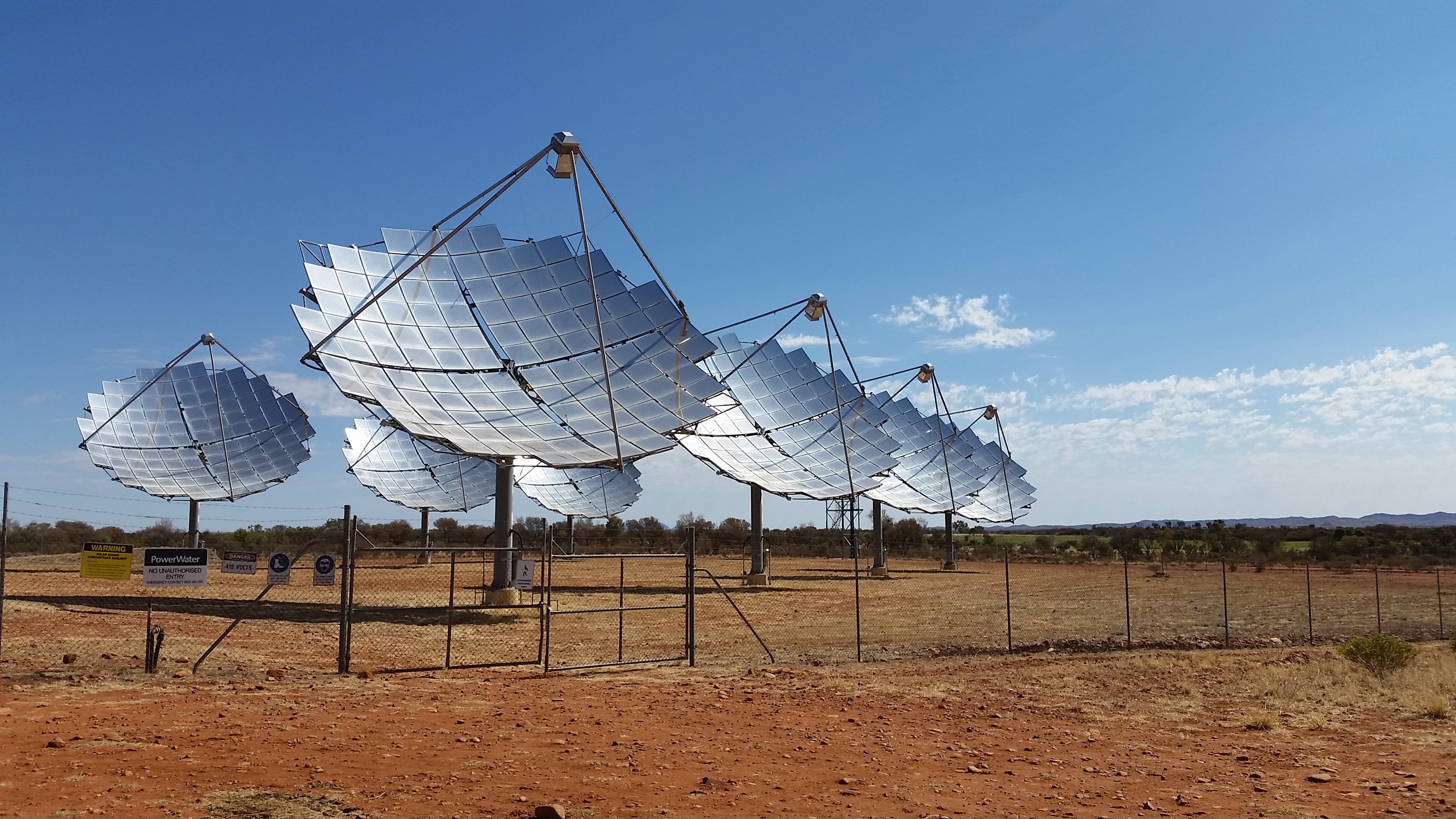 After our visit to the Hermannsburg historical site we left town via the back road, heading past the best looking Community Centre and Primary School buildings and grounds we had seen for quite some time, they weren’t completely finished but obviously the governments BER school project initiative was underway out here, compared to the rest of the town it was amazing. Just past the school we turned left and drove around to the Hermannsburg Solar Station, where there were about 8  massive solar dishes that followed the sun throughout the day, supplying the town with half their power supply. It was pretty amazing to see such a huge setup out here in the middle of nowhere and we also found a geocache here as well.