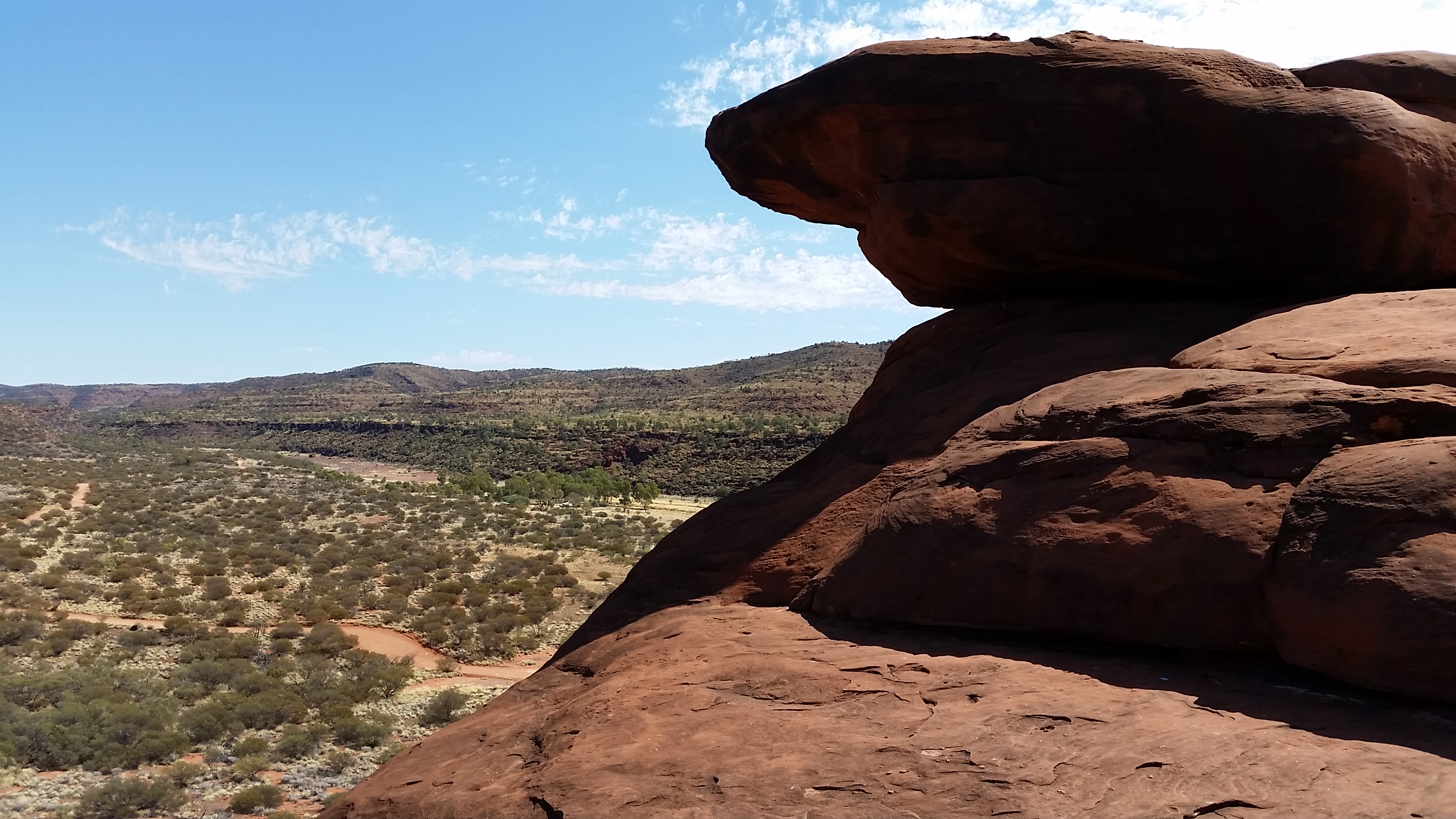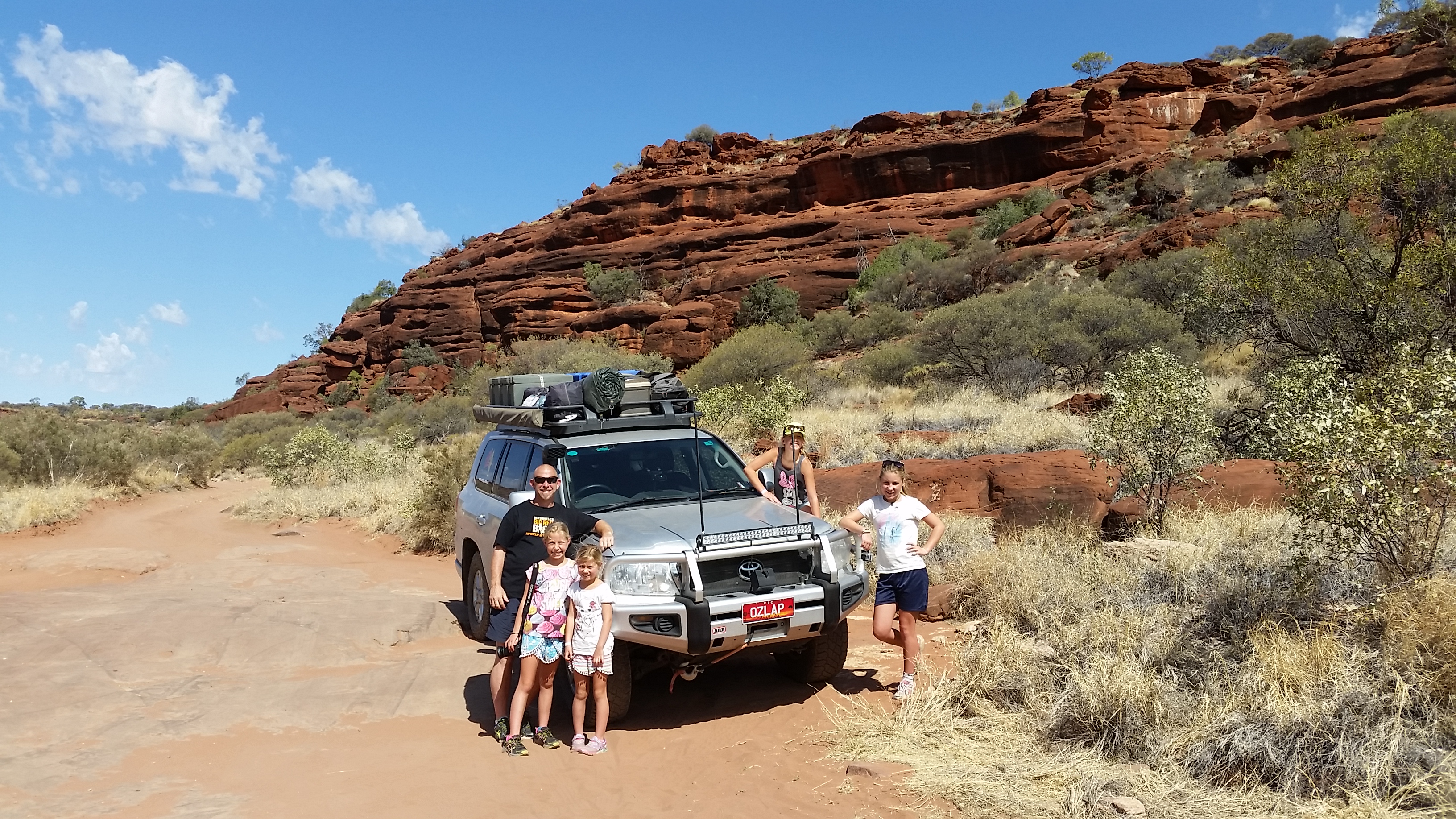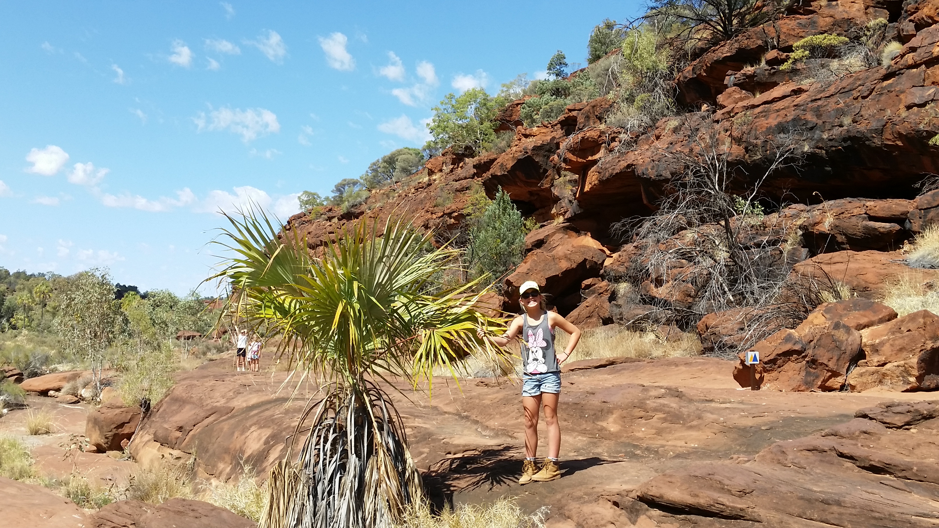From there on the drive got a bit more rough with lots of boulder hopping and rock crawling, which meant I spent most of my time outside taking photos of the car doing its thing. Finally we arrived at Palm Valley, and pulled up next to about another half a dozen cars. We made our way along the walk, deciding to go in the direction of the stairs first, which took us above the valley, giving us a great view of the palms below. After a while we headed back down into the valley and hiked back along the river towards the information hut and the cars. Unfortunately there was not a lot of water, only small patches of stagnant puddles, but the palms did look amazing and we got some great photos. On the way back we drove into the campground to see what it was like, it was quite good, with gas BBQ’s and flushing toilets and we also got to over hear a couple having a barney on the CB radio as the husband was trying to reverse the car and camper trailer into their site. We chuckled as we knew that we have had some times where we sounded exactly the same!!!!