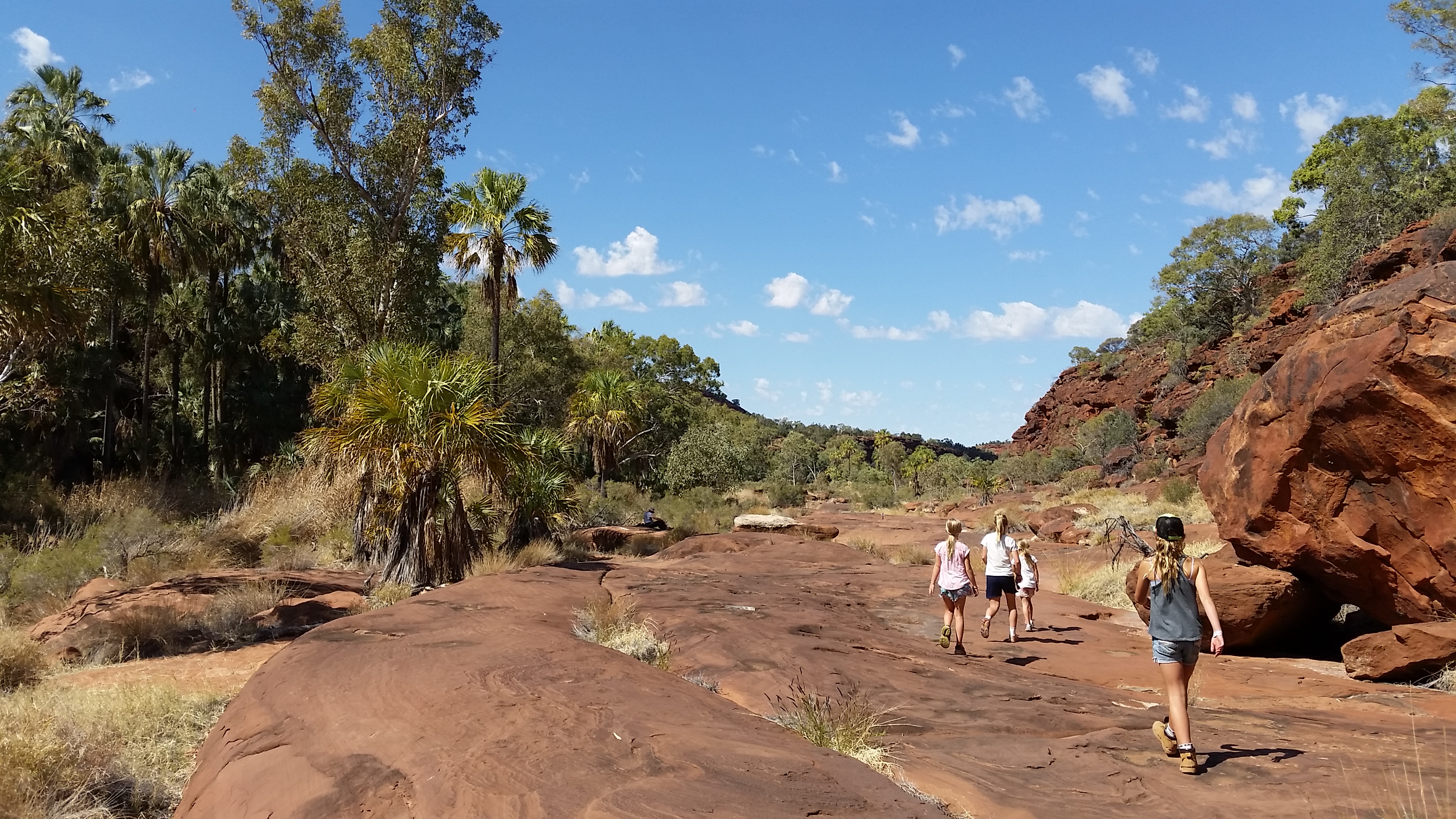 During our last week in Alice, we decided to finally head out to Hermannsburg and Palm Valley, which are both located about 130kms west of Alice Springs. We headed out early for our drive, arriving in Hermannsburg by about mid morning and considering the huge sign announcing the town on the road in, the actual town was pretty much non existent, however we did notice a small sign with an arrow and ‘historical site’ written on it so we figured we’d follow that. Thankfully it led us to the main attraction of the town, the old historical precinct of Hermannsburg, which was the site of the first Aboriginal mission in the Northern Territory established by the Lutheran Church way back in 1877. The Mission operated until 1979, and in 1982 the control of the land was given back to its traditional Aranda owners, with the restoration of the historical buildings beginning in 1987. We had a wander through the old township, especially enjoying taking a seat at the school desk in the school building and reading what was written on the blackboard, the Arrernte word for numbers one, two and three, however ‘all that is beyond 3 is called a mob!!’ The girls liked the way they thought!!