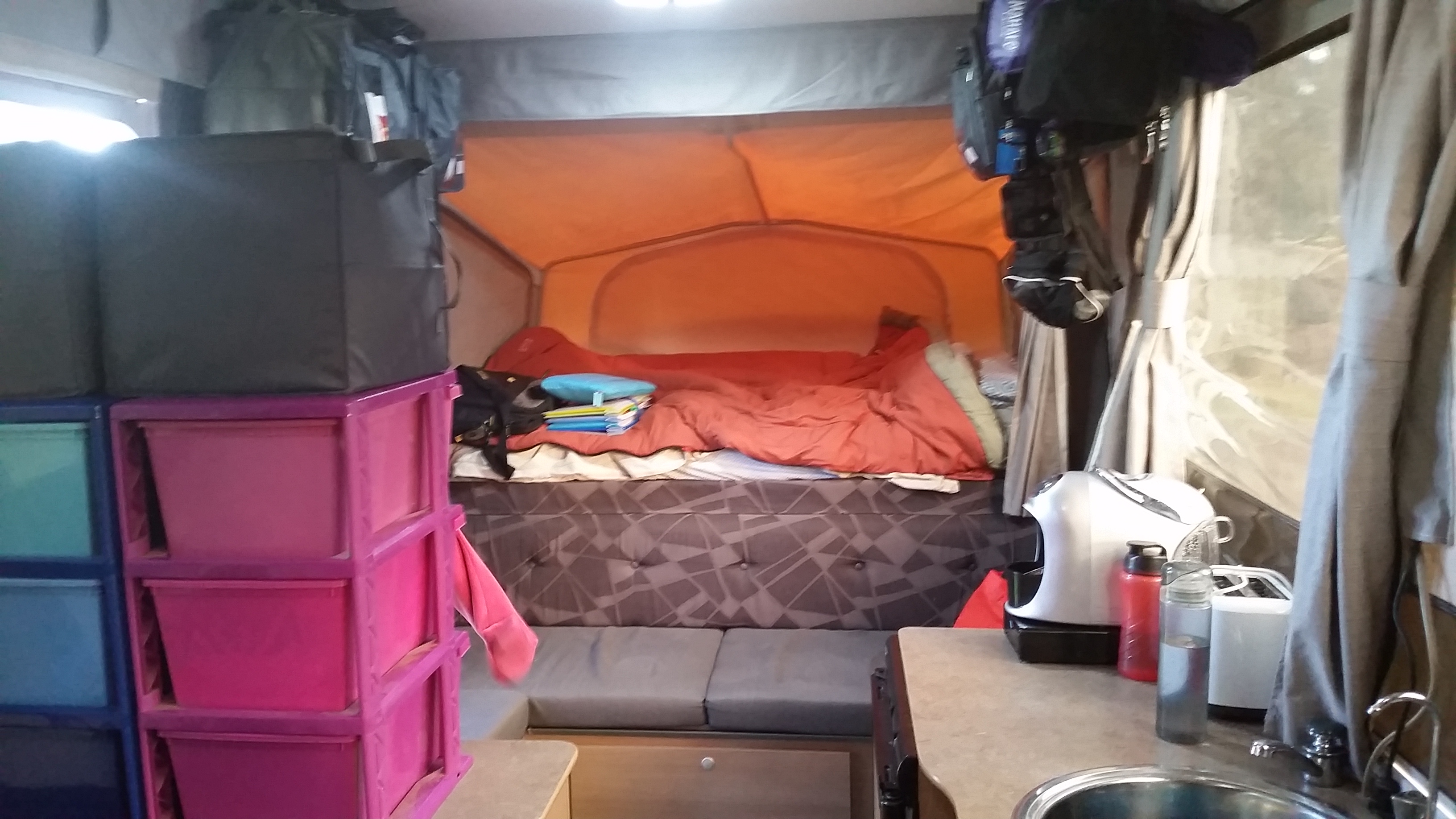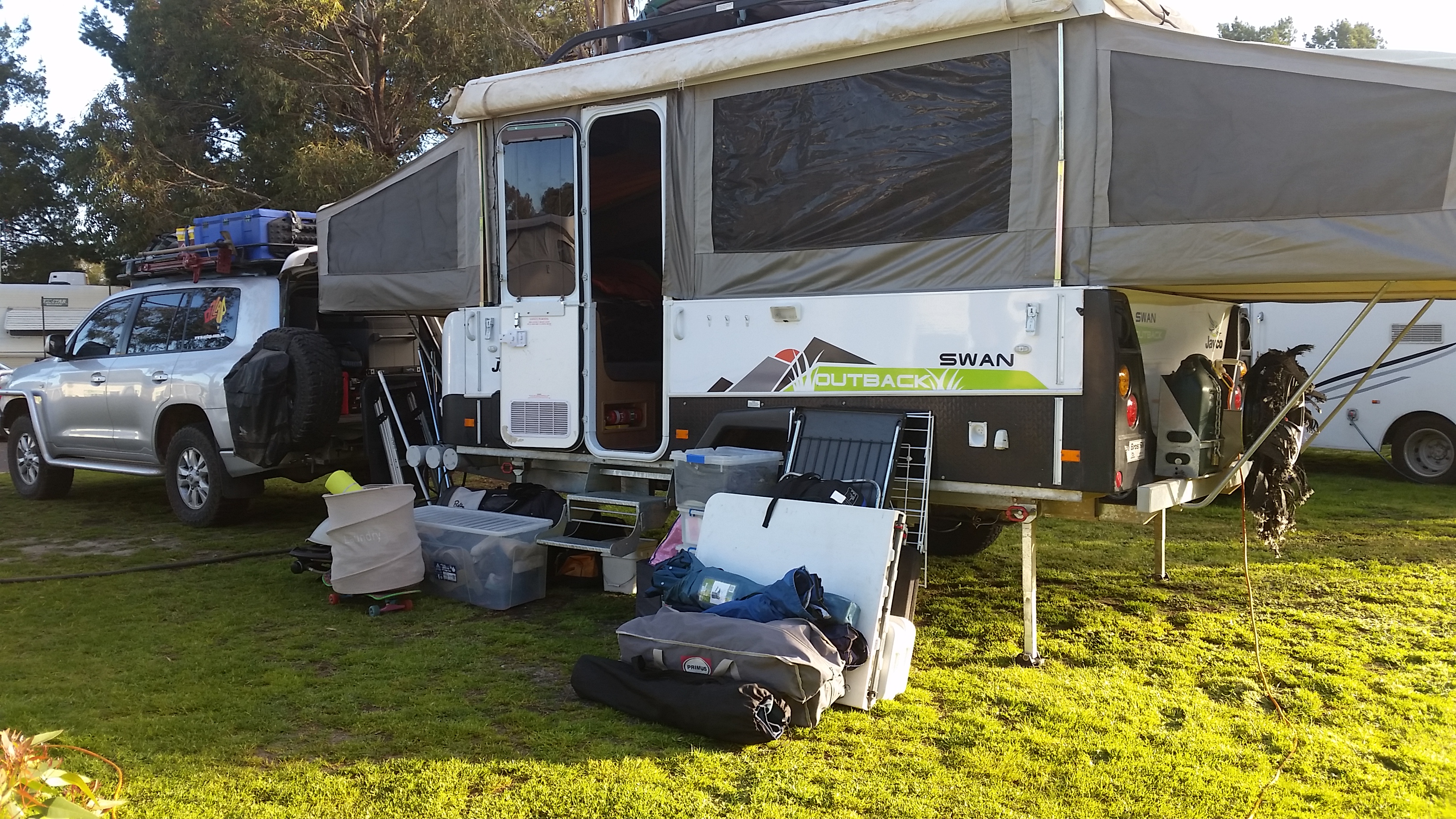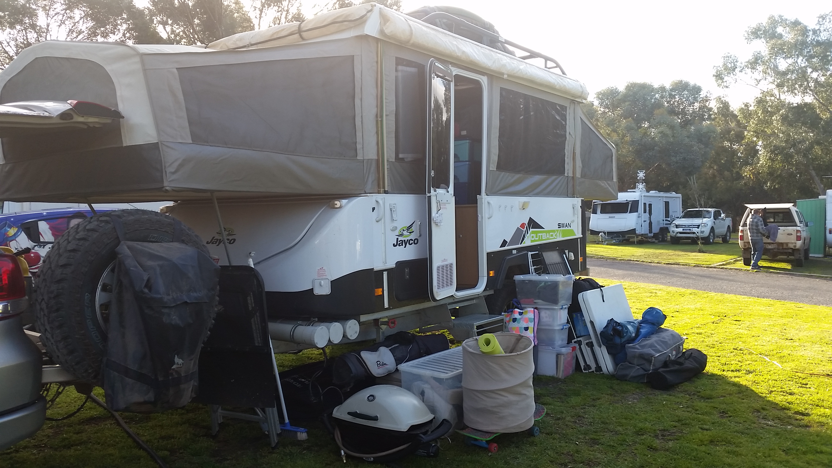 And so D day came and by 10:30 the next day we had thankfully taken possession of our new van, the Jayco Outback Expanda. Richard and Andrew from Horsham Jayco had stayed true to their word and as promised we had smoothly swapped our smaller, miniscule storage campervan for a MUCH bigger pop top caravan. In true form the Victorian weather came to the party again and it poured rain from 9am to 9pm that day, however it didn’t stop us from attempting to repack everything, even if it did take us well into the night.