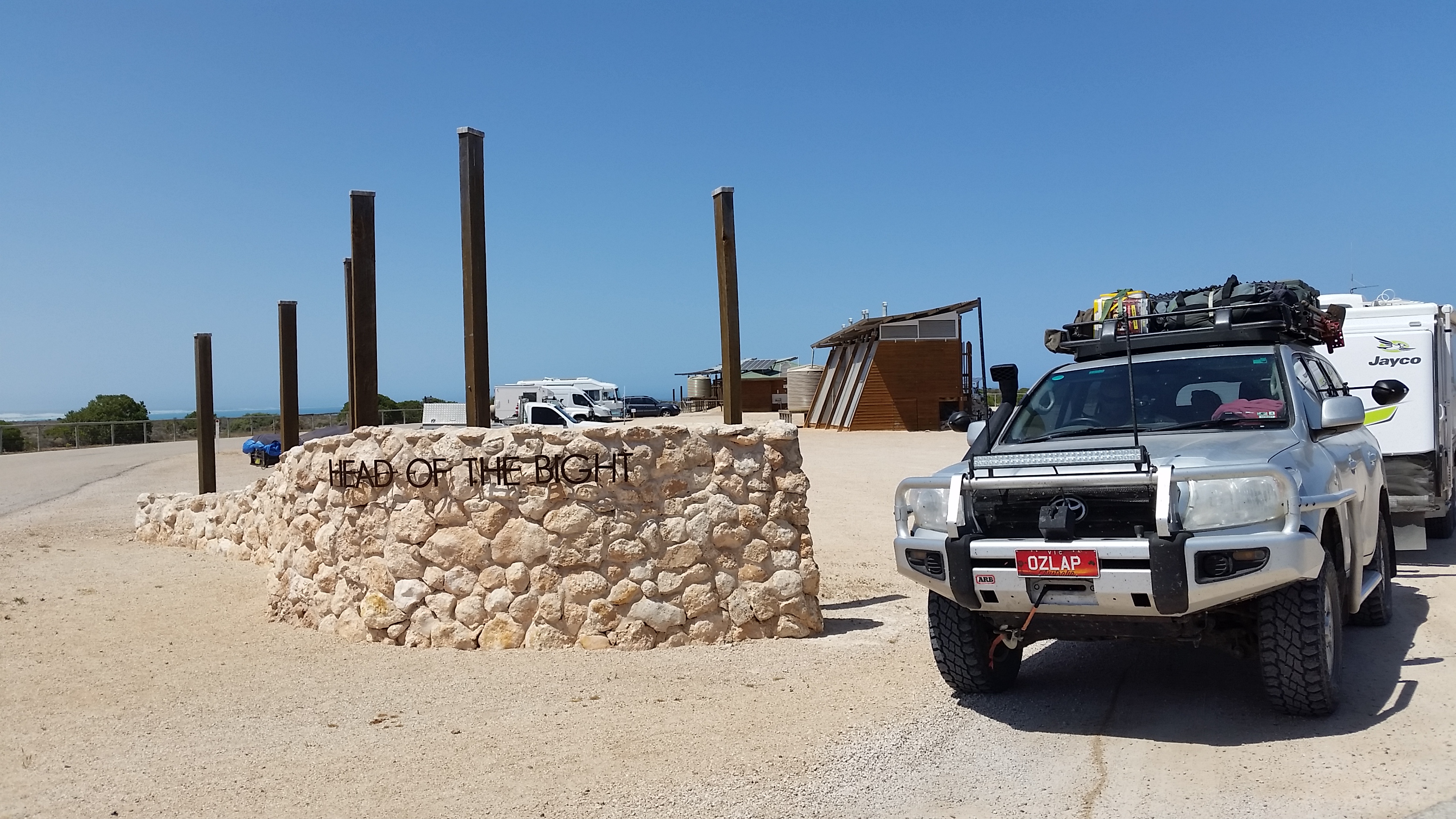 After we left Coorabie and Fowlers Bay, we headed west to begin our Nullarbor adventure. Our first stop was at Nundroo Roadhouse, famous for being home to 2.5million wombats, for Nik to play hole 4 of the Nullarbor Links, which at this stage he is happy with as he is 1 under. Next up we stopped for lunch at the Head of the Bight and to see if we could spot any whales. However, sadly and as expected, a sign at the turn off on the highway, said that there were no whales in the bay today, but we still decided to take the 15km drive in to see the cliffs, as well as a toilet stop and to have lunch. During the months of May to October, the Southern Right Whales head up from the freezing waters down in Antartica, to give birth to their calves. We knew we were right at the end of the calving season, but we had been holding onto hope that the whales would hang around for just a few more days, but alas it didn’t happen, they had obviously ran out of food, taken their bat and ball and headed home. The gentleman in the info centre was a bit arrogant in that he stated the obvious in saying that we were too late and the whales had gone home, perhaps we should have come earlier……..derrr. Anyway, after taking a deep breath and giving Nik a death stare to indicate that he shouldn’t say anything back we still had to pay the $14 to go and have a walk and look along the boardwalk. Even with no whales the bright sunny day made for fantastic views of the gorgeous aqua waters and rocky cliffs of the Great Australian Bight, whilst not as big we did see quite a few cute little lizards running around which made the girls and Nik happy.