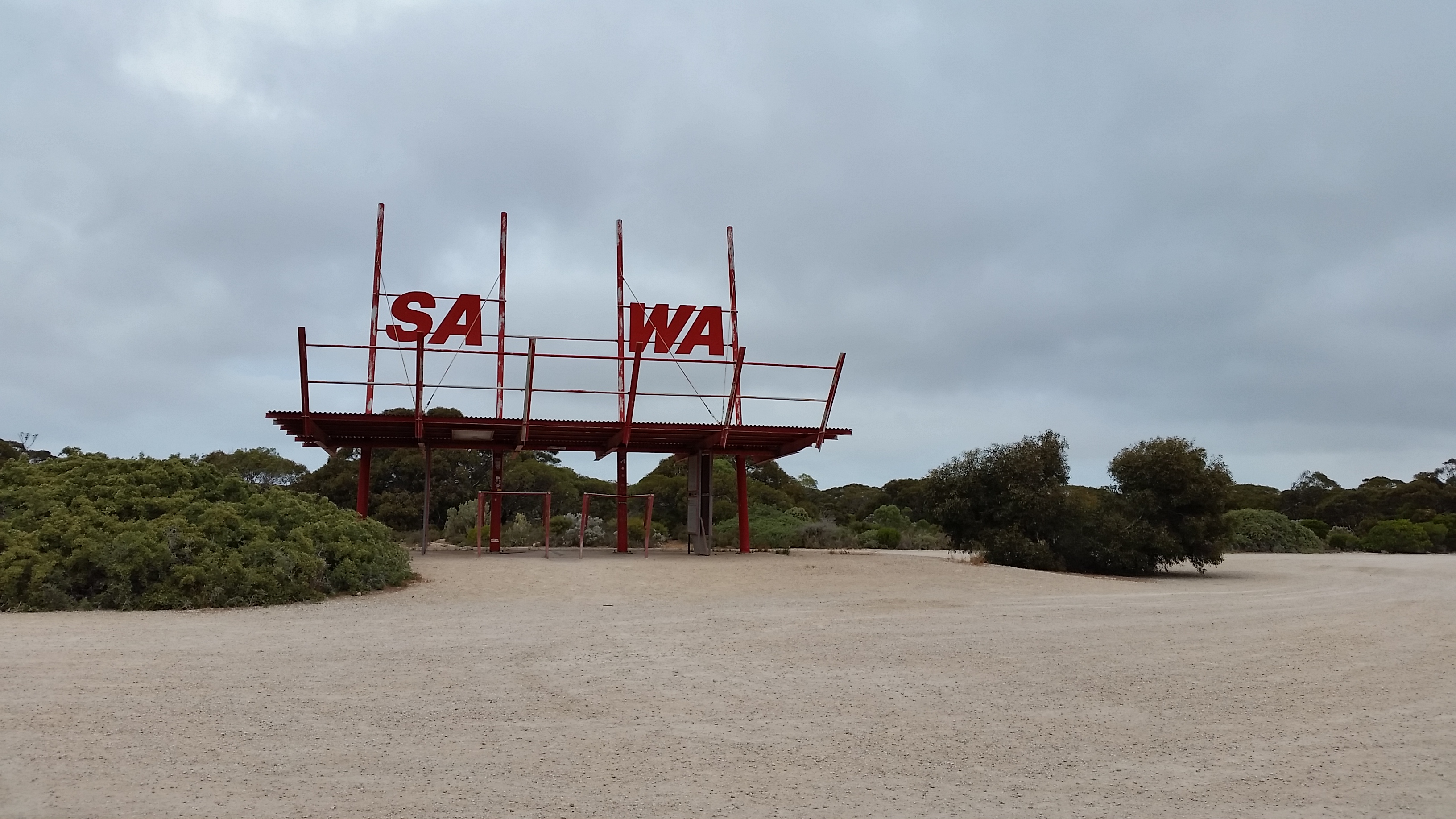 After we made sure we had used all our fruit and vege we packed up and headed west towards the border, only about 80kms away. Nik had another hole to play on the Links course and then we crossed the border and even though we stopped and didn’t have any fruit and vege to declare we stood chatting to the guy about what life is like working out here, it was an interesting perspective. Another 12kms down the road we stopped to play hole 7, find a geocache and get a coffee at Eucla. Our destination that night was Cocklebiddy roadhouse, but not before Nik had played holes 8, 9 and 10 of the course.