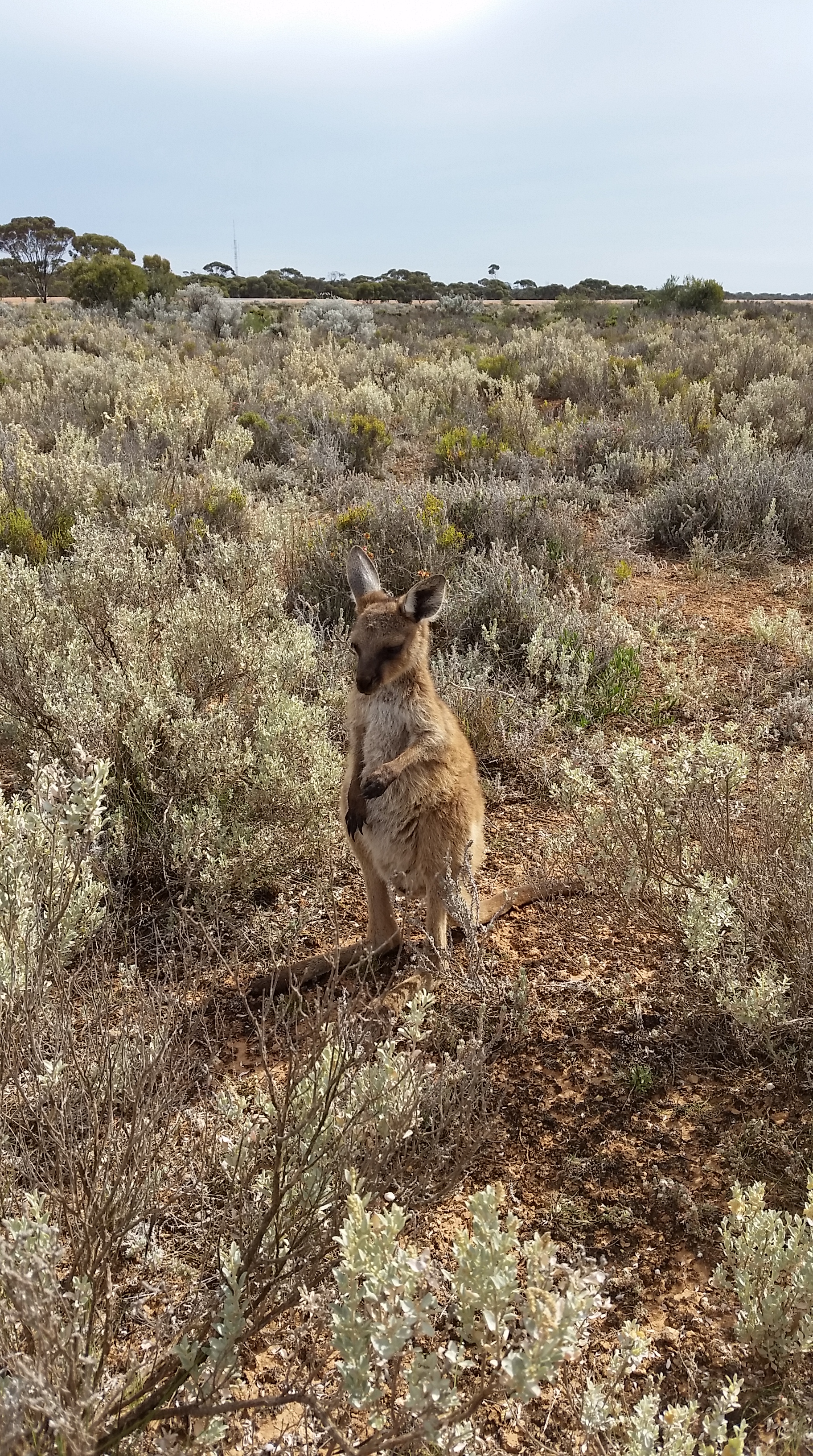 A little joey we stumbled upon, Mum was nowhere to be seen (could have been the big dead roo that we saw a km back that had been hit by a car), so we organised the roadhouse to get a wildlife rescuer to come and get him. Hopefully the roadhouse followed up on it and did actually call the rescuers…….. Poor little poppet 😦