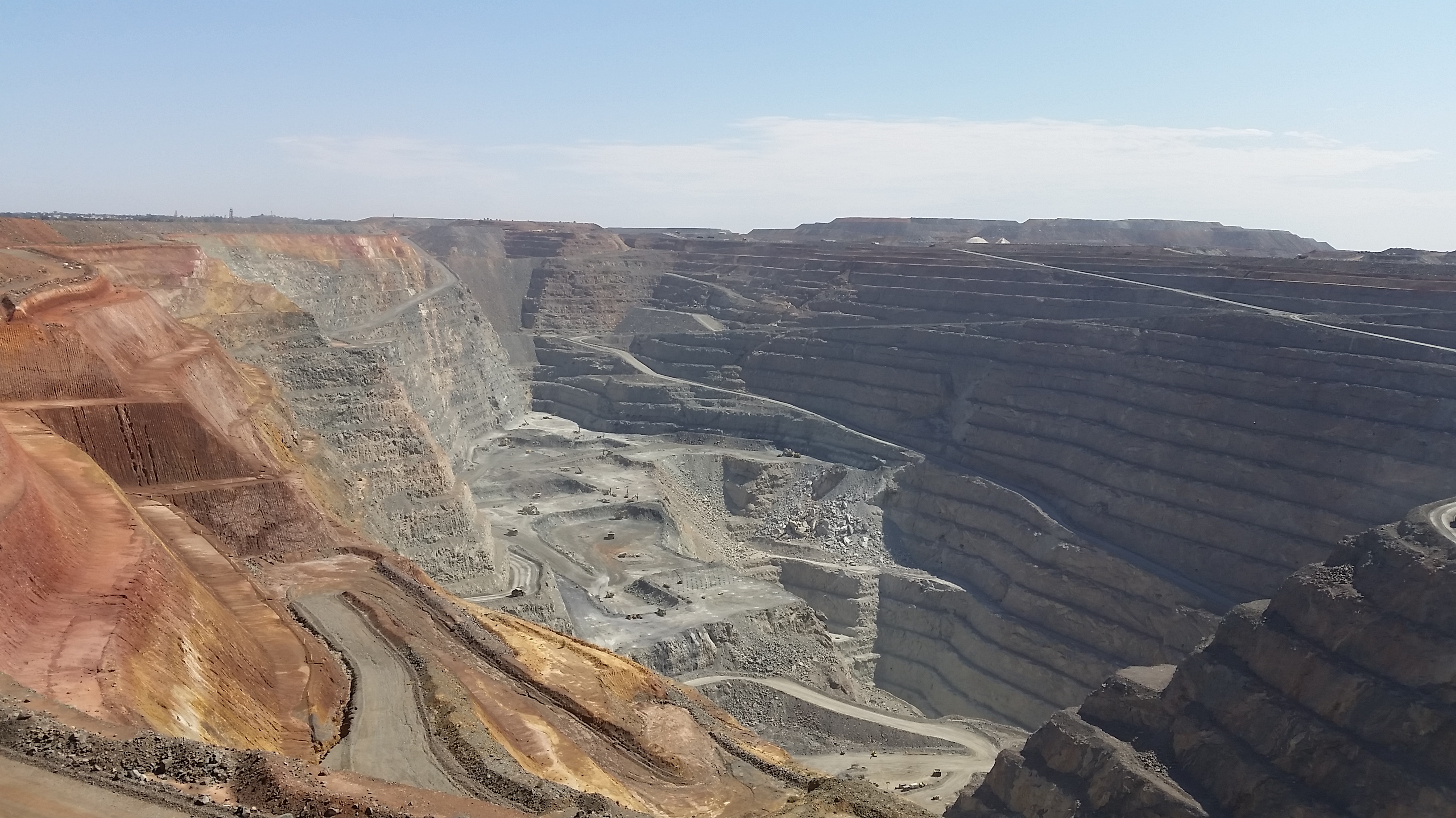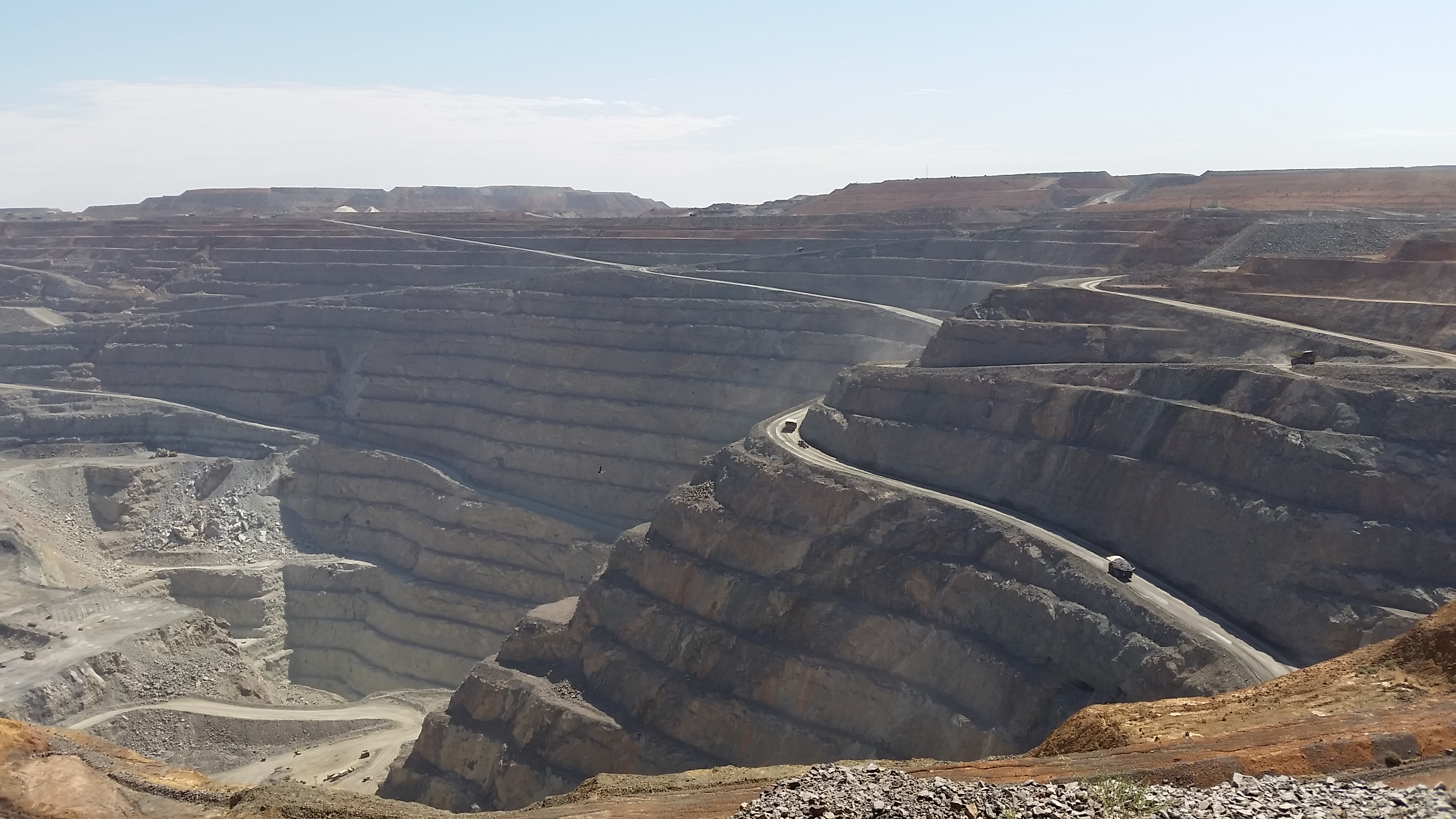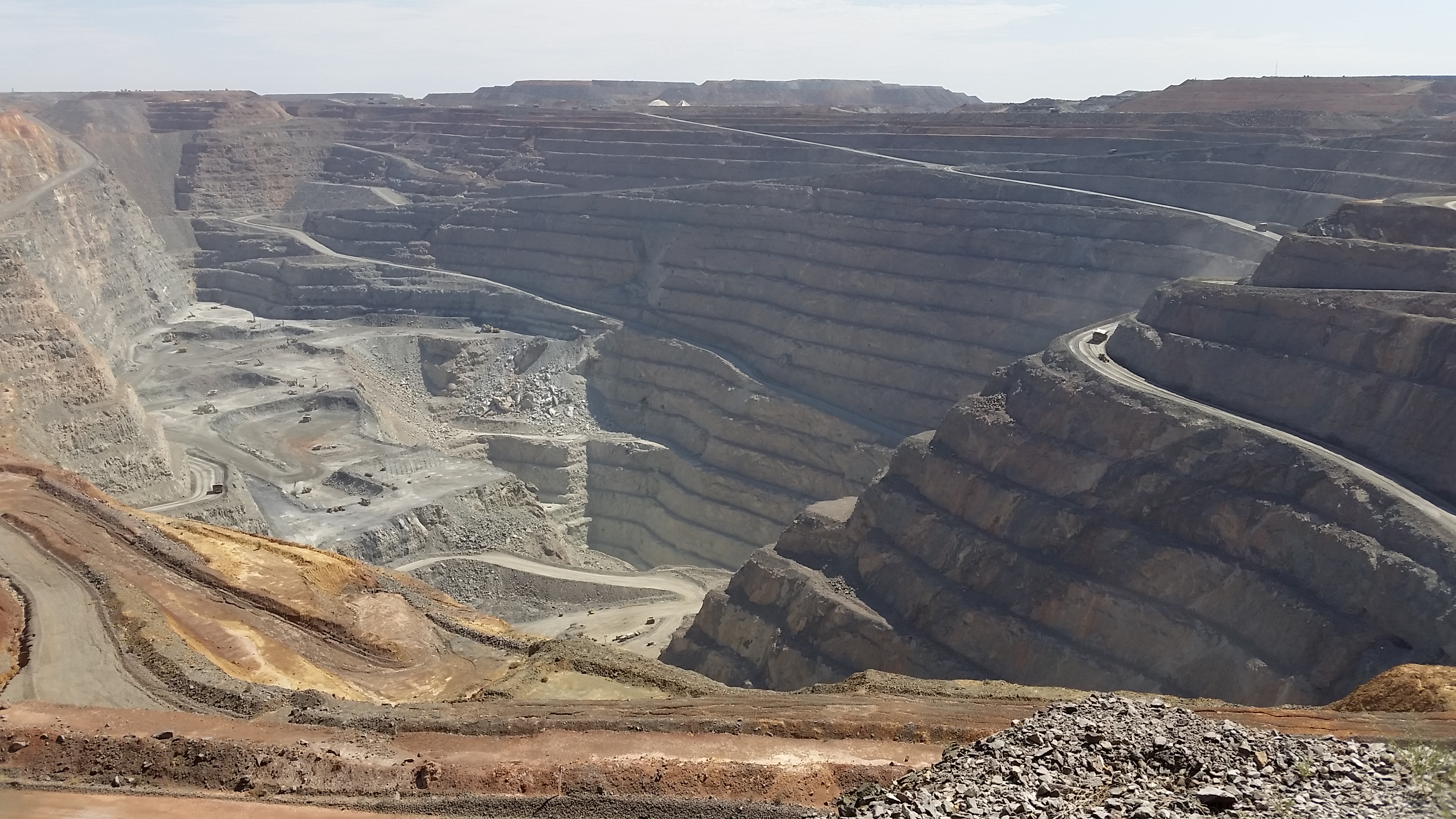 Of course, as expected of all visitors to Kal, we headed to the Superpit lookout at the edge of town. We’d been here before but it still amazed us as to the mammoth size of the pit, after we read some info we, well more so Nik and I (as the girls had long ago tuned out at the mere mention of ‘lets calculate’) gleaned the following facts; truck drivers work 7 days on and 7 off, then 7 nights on and 7 off, doing 12 hour shifts; each 12 hour shift involves the drivers doing 18 hauls of rock to the top; only 1 in 7 of these hauls actually contains gold, about a golf ball size weighing about half a kilo. We then further calculated, using the current price for gold, that for each shift one truck driver does, he/she hauls up about US$41,000 worth of gold. Not a bad amount, but then again I’m sure the owners of the superpit, KCGM might have a few overheads to cover, as the huge buckets on the loaders cost about $1.5 million alone…..