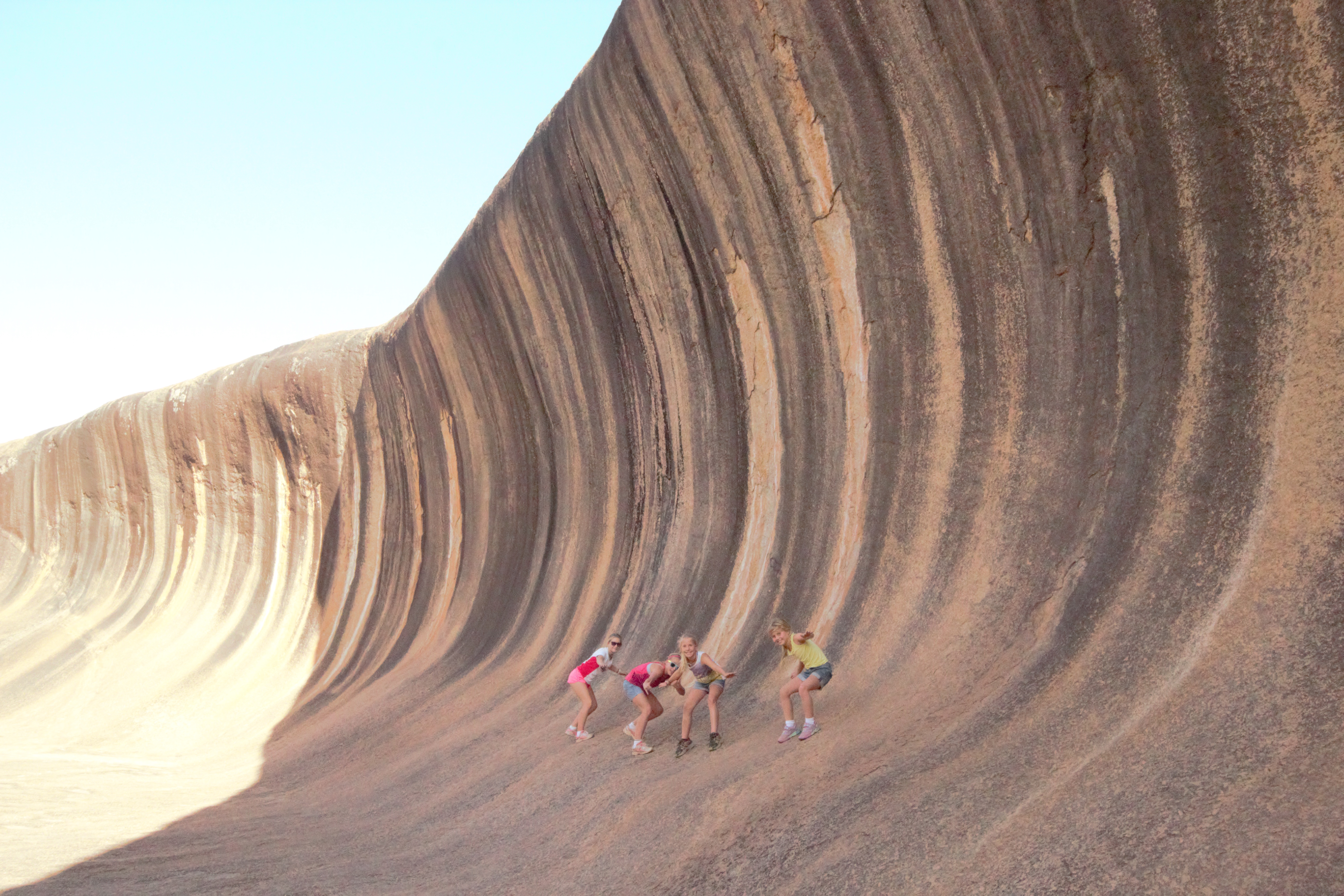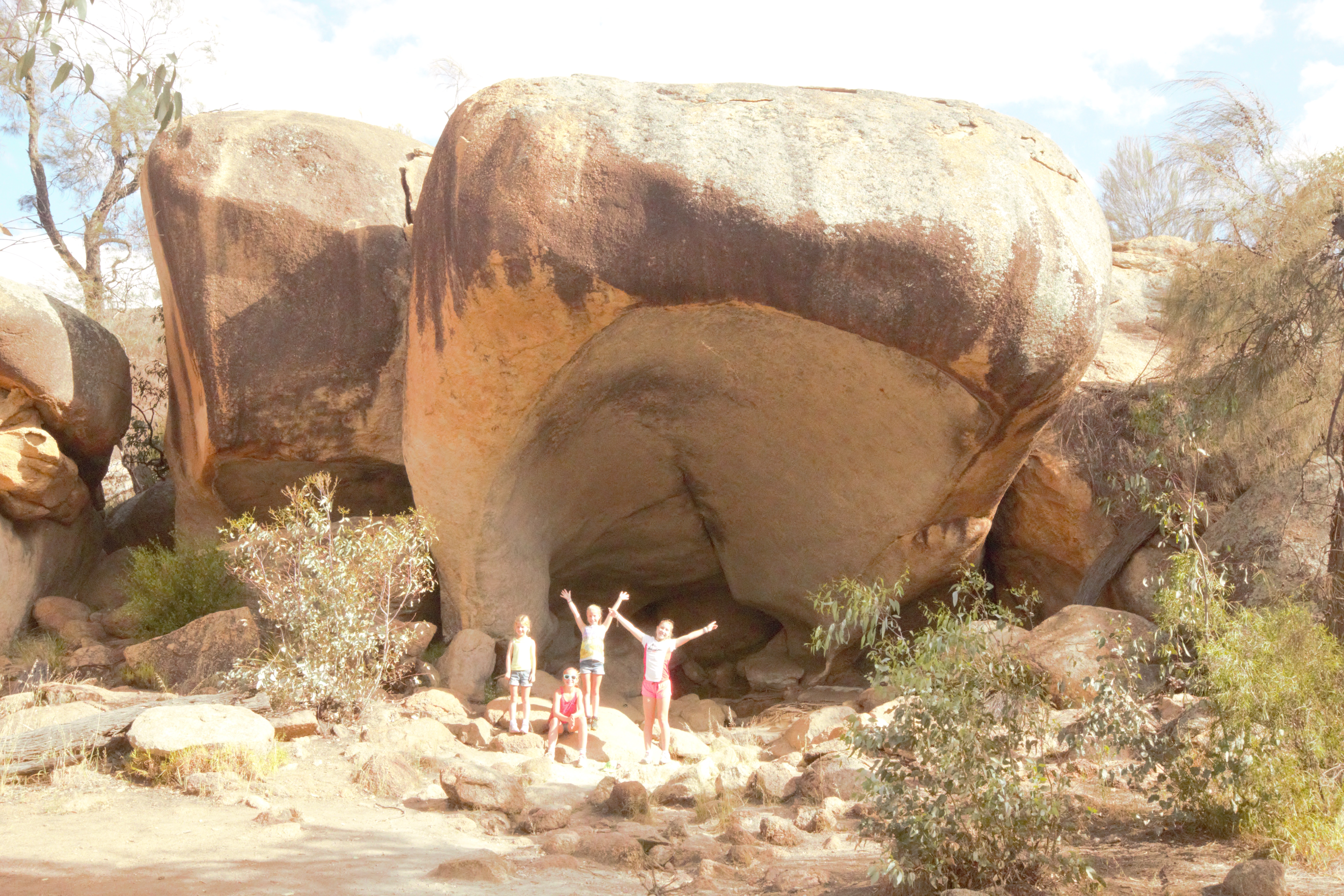After we had come up with what we thought was an ingenious idea we decided to take photos of the girls pretending to surf the rock (tongue in cheek here as I think 9 out of 10 visitors do the same!!), afterwards the girls decided it was hot enough (near the equator somewhere) to go for a swim in the pool, whilst Nik and I spoilt ourselves with a coffee. After being lost for so long in the bush we were thirsty and dehydrated so this was just what the doctor ordered. After our quick stop over at Hyden, which we hadn’t been planning on doing we were back on the road ready for our next adventure and destination on our OZLAP……….