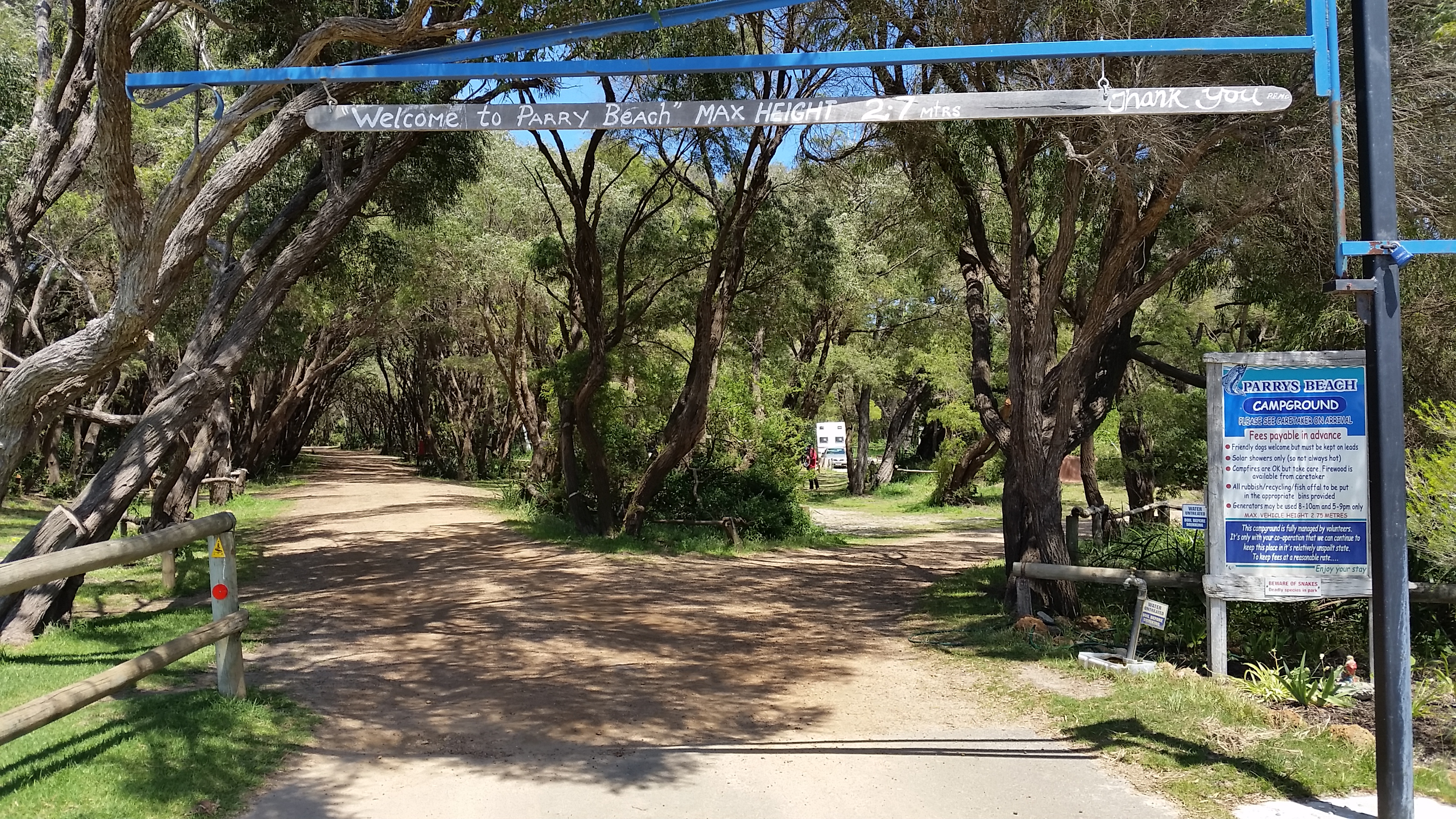 Our next stop was at a council run campground about 25km west of Denmark, it is unpowered, has flushing toilets, solar heated showers and fire pits. It is completely run and maintained by volunteer staff and is over half the cost of the caravan parks in and near town and for $5.00 you get a wheelbarrow of chopped wood!!!! Thankfully when we arrived just before lunch there were plenty of spots still available, our next hurdle though was seeing if the van fit under the height restriction bar, thankfully it did by a mere 10mls. Nik got up on the van to get the best vantage point to guide me through, then as we were slowly driving under people were yelling out to stop you’re not going to fit, with Nik yelling back at them ‘Nah mate,we’re right!!!!’ And yes we were right mate!!!!