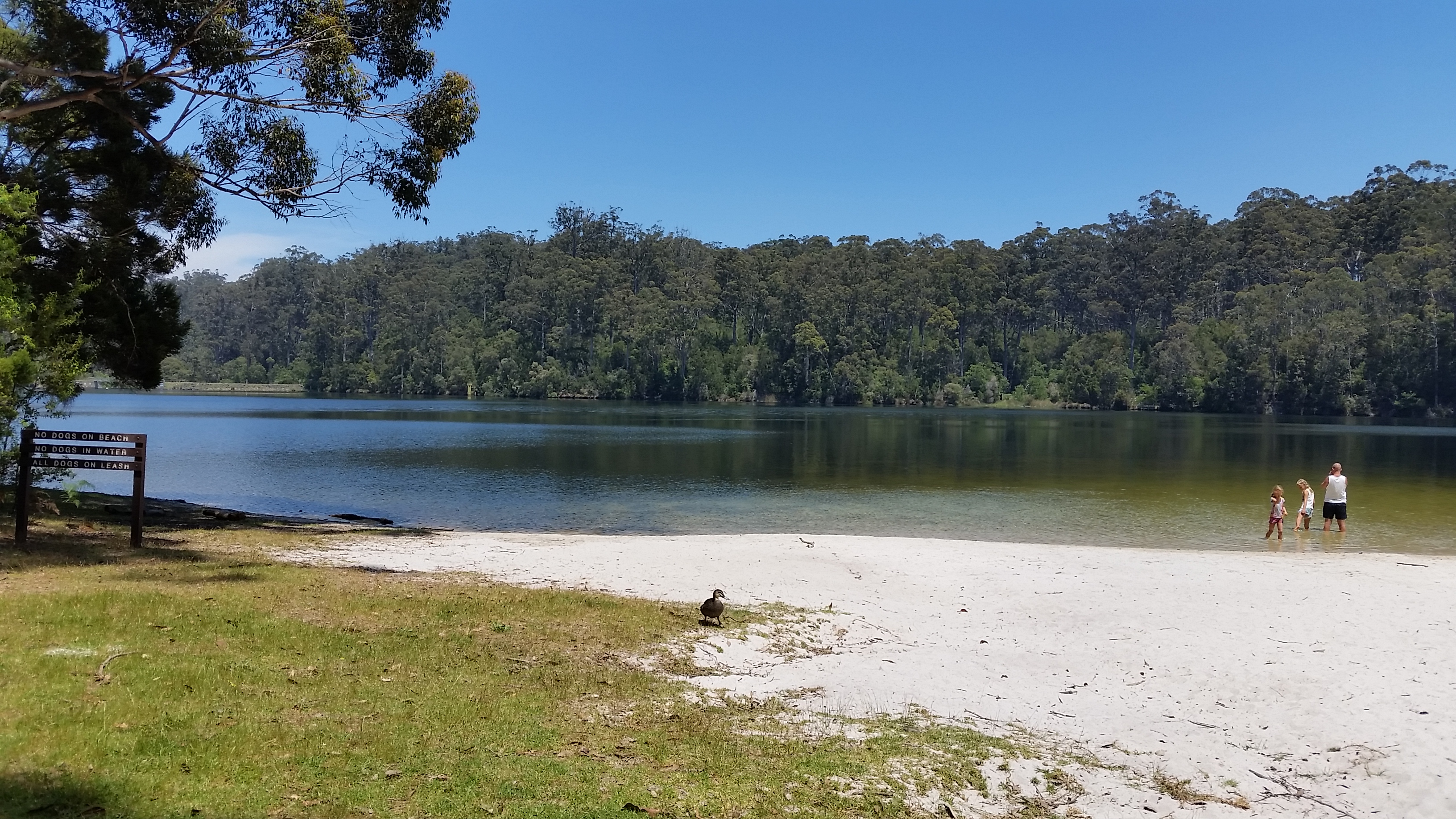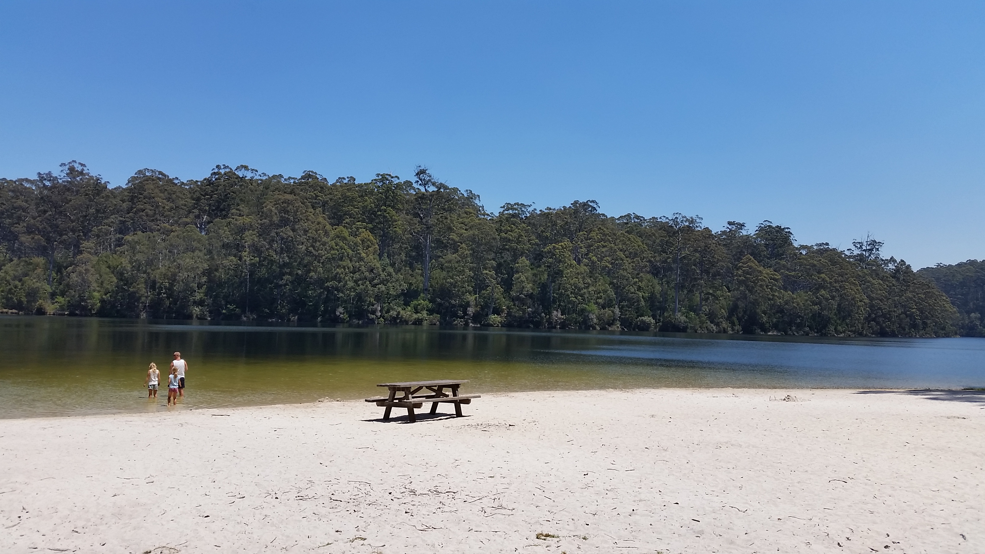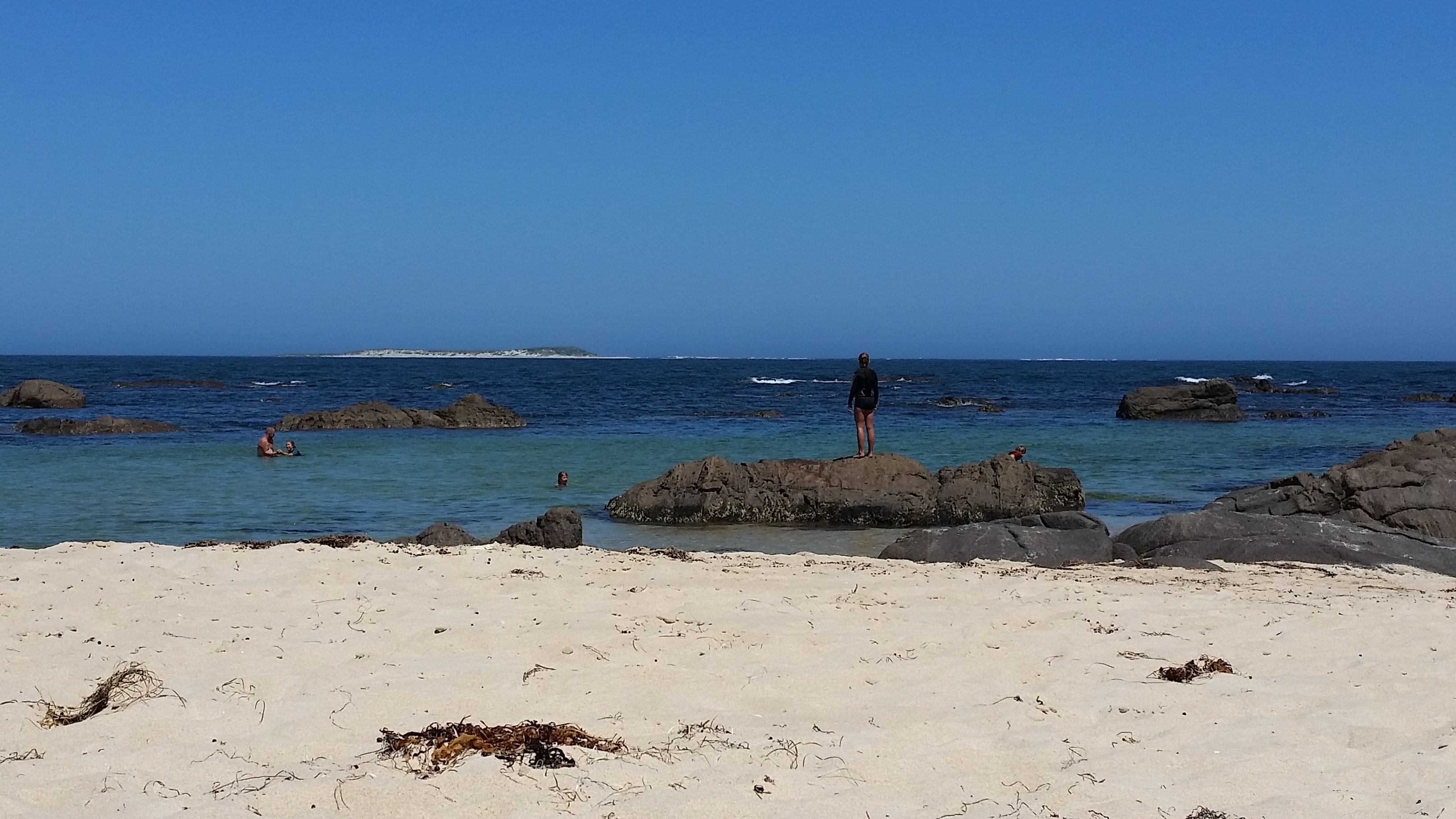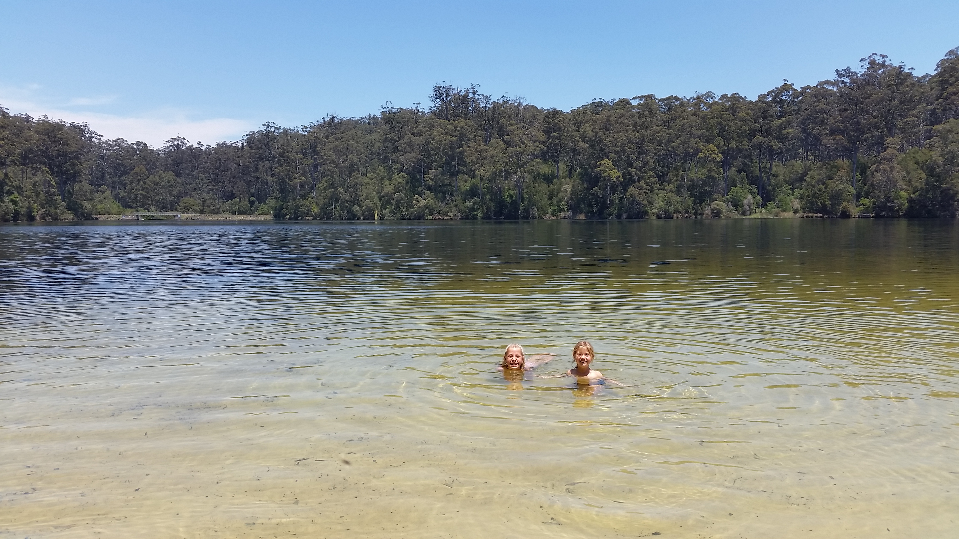 The next day with the weather looking in the high 30’s we decided to take a drive down to the coast to a little fishing settlement called Windy Harbour. Windy Harbour is the only 2wd access to the WA coast between Walpole and Augusta consisting of about 220 cottages which are leased for about 20 years each. WOW, what a place, we went to Salmon beach first for a swim in the shallows (lots of rips and rough beach) and then to the ‘township’ which had no shops, where we stumbled upon a great grassy area with picnic tables and an awesome playground where we had some lunch. Afterwards we went to the beach just over the dune, it was fantastic, a sheltered little bay where all the boats were launched and a great swimming area protected by rocks. The girls had a ball playing in the water and jumping off all the rocks, I think they were playing a mermaid game of some sort. In the end we had to drag them out, they were desperate to come back again tomorrow as they loved it that much, unfortunately we had to say no as we had other stuff to do and we were moving on the day after.