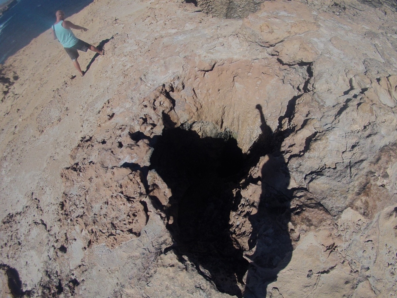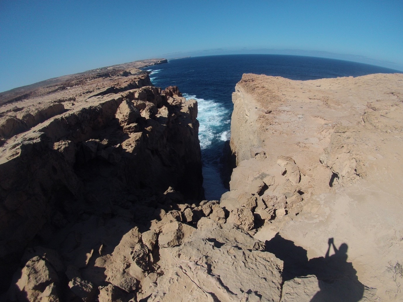 After a while spent playing ‘cat and mouse’ (pardon the pun) we packed up and headed off, listening to the pitter-patter of our tiny friend as he searched for a way to escape the roof compartment above us, for the drive home. Today’s drive was a little different to yesterday’s drive, it was less sandy, rockier and little bit harder and at times hairier, as we navigated a sometimes unclear track along the enormous cliff tops. This track took us home via the rugged Zuytdorp Cliffs on the western side of the peninsula, past some amazing views and southward down to Thunder Bay Blowholes and then False Entrance Blowholes. However, as we were blessed with some awesome weather and no wind, this translated into no swell or waves in the ocean and therefore no blowing of the blowholes. Still standing next to the holes and listening to the awesome sound of the wind, air and waves way down below gave us a sense of how powerful and amazing they could be.