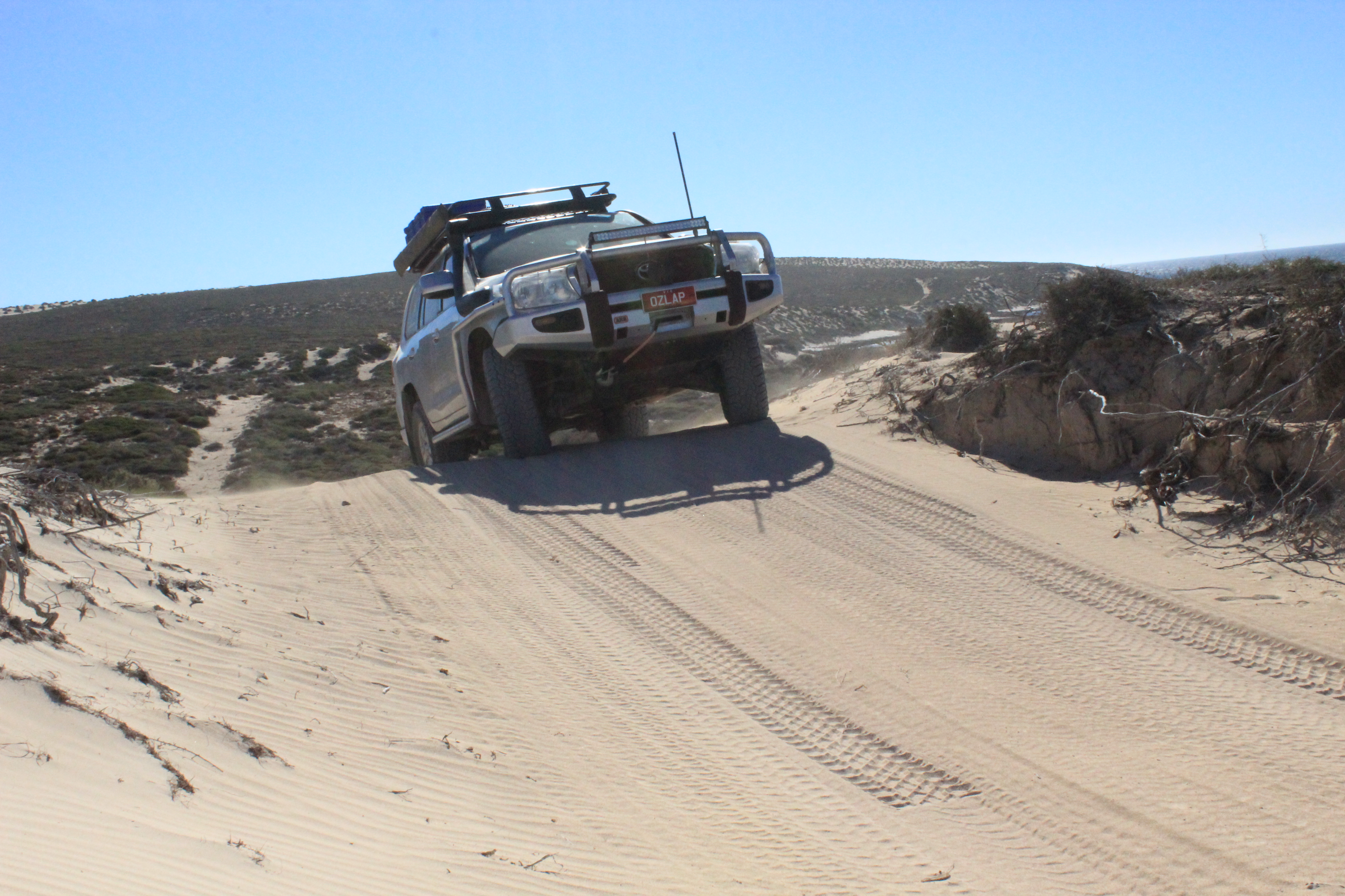 We found the drive through the sand dunes was easy and loads of fun, some of the turns were tight in our big cruiser, the sand was fairly deep in lots of sections and the track also became narrow in parts as well. Ascending the dunes, we were fortunate that we didn’t come across another car coming the opposite way, as that could have made for some creative manoeuvres and possible near misses as you couldn’t see what was coming up the other side. In general, we had a good visual most of the time in regards to the track ahead. Silverfox didn’t miss a bit and much to Nik’s disgust we had no instances where we even nearly got stuck, so the winching and Maxtrax’s were kept for another day!!!