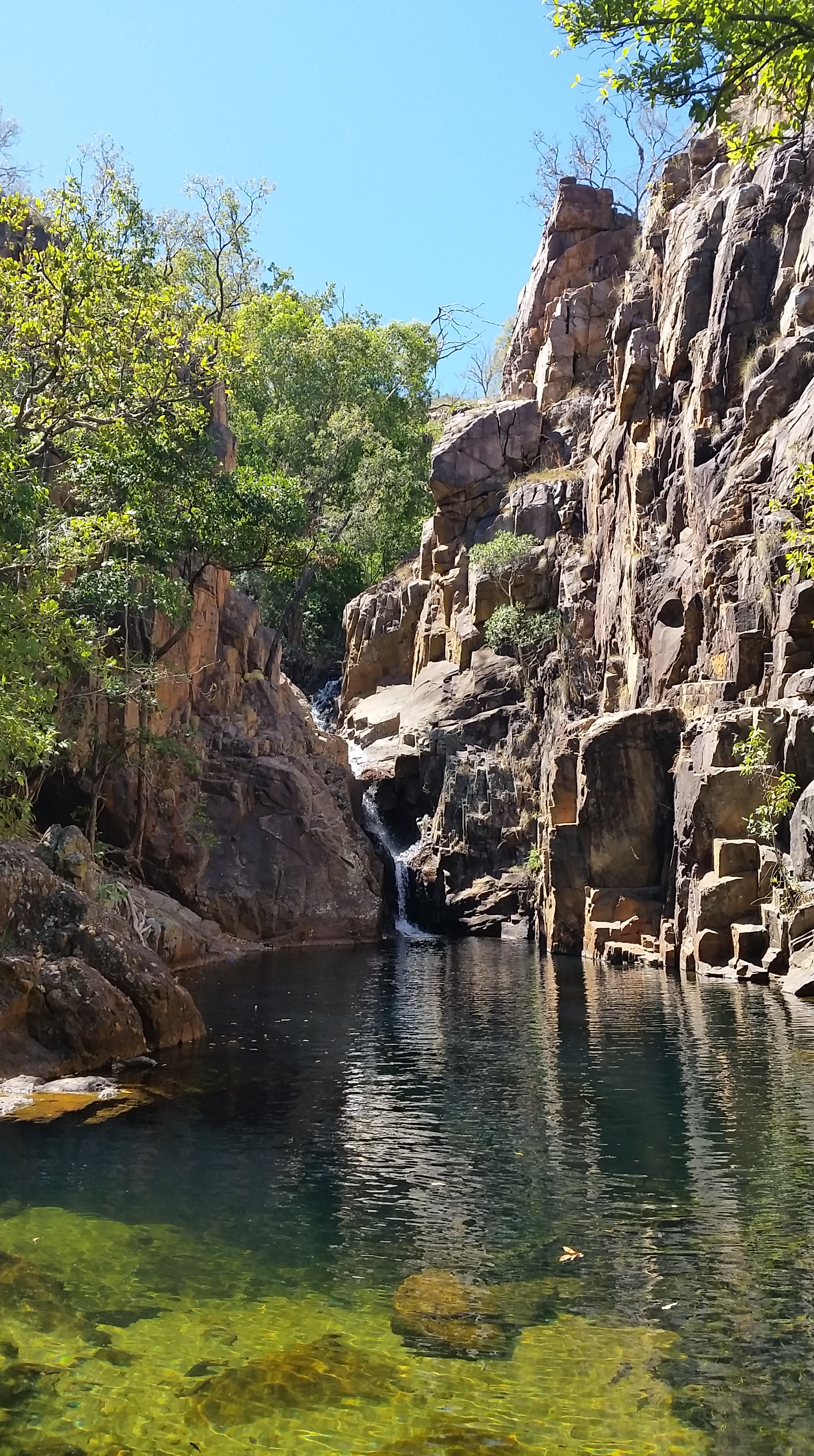 The plunge pool at the bottom of Gunlom Falls, home to a 3 metre freshwater crocodile.