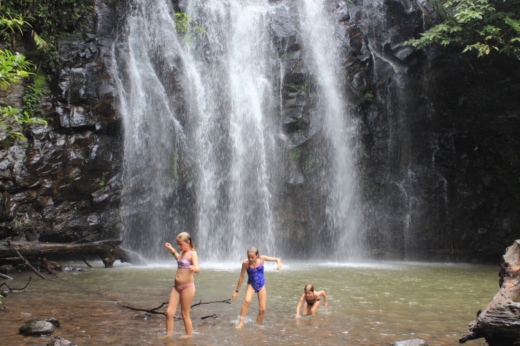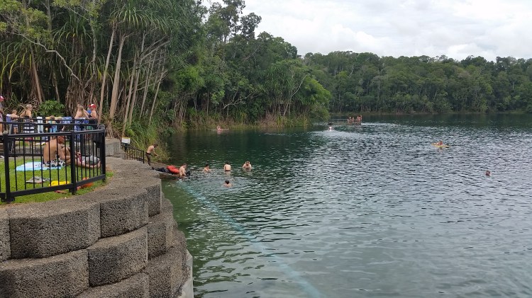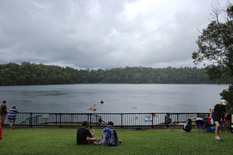 Given our busy couple of days we felt that we needed to head back to the Leeds for some R & R and for the kids to do some schoolwork, as we couldn’t find a spare minute to do it at the park!!! As usual, they welcomed us with open arms and we spent the next couple of weeks relaxing, exploring waterholes and chasing waterfalls around the tablelands. One of our outings was a day spent swimming and kayaking in Lake Eacham, a short drive east of Atherton, past a gorgeous little town called Yungaburra. The lake is part of the ‘Wet Tropics World Heritage Area’ and is actually an old vocanic crater that exploded many thousands of years ago. Can you picture the girls eyes glazing over as soon as I mentioned volcano….. they just hip and shouldered me out the way as they walked straight past and headed to the water for a swim. However, I still counted the day as a school day, as there was a small amount of education involved………..