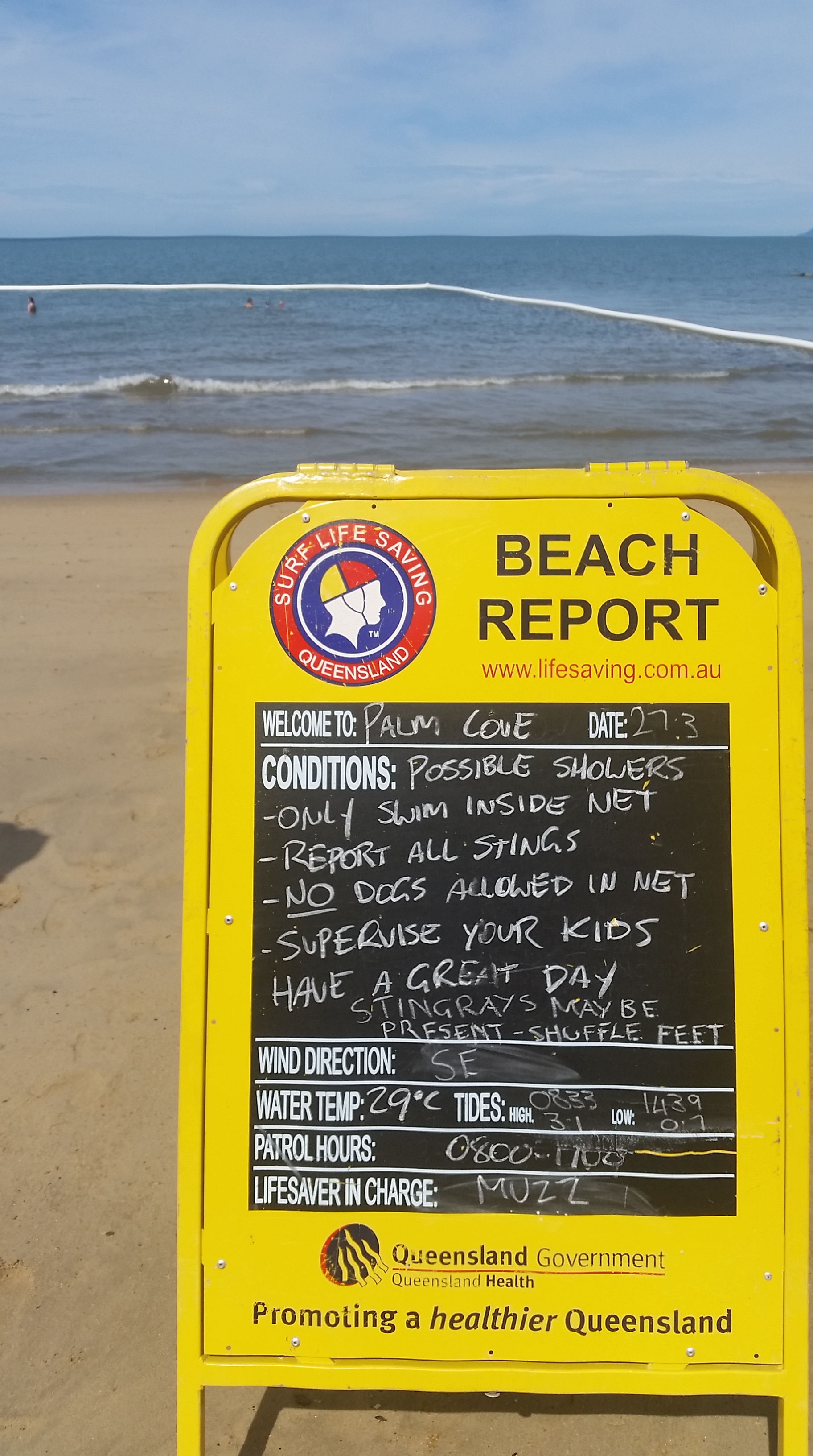 From PD we drove the coast road back down to Cairns, calling in at a few little coastal villages including Ellis Beach and Palm Cove. Fortunately the patrolled beach at Palm Cove was open, although I was a little apprehensive with the stinger nets out and signs warning of the presence of stingers and crocodiles. The kids were also instructed to shuffle walk in the water in order to scare away the sting rays…….. Nik and the girls had a ball finally swimming in the ocean for the first time in over 7 months, however I was less excited as I sat on the sand keeping a watchful eye out for crocs and ensuring the girls were shuffling and dragging their feet, whilst anticipating the blood curdling scream resulting from the unmeasurable pain caused by the many dangerous and life threatening tropical stingers that I was reading about on the oh so helpful information board I was sitting next to…….. After Nik and the girls finally got out of the water, we dried off and headed back into Cairns, calling in for more sticky beaks at the northern beaches suburbs of Cairns.