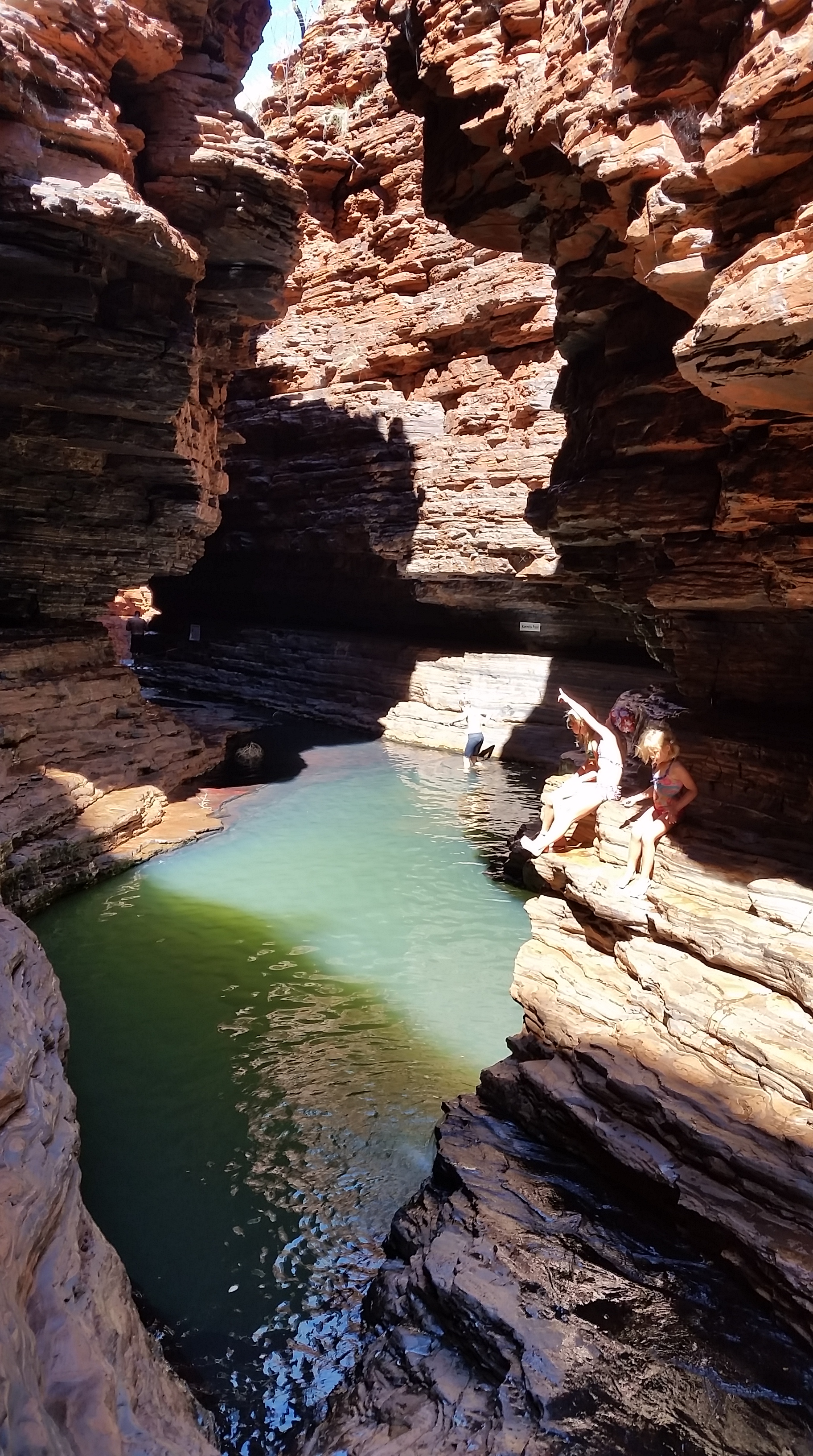 Arriving at the ‘carpark’ filled with a dozen other cars, we headed out on the 750m rock hopping hike to reach the edge of the mainland, even though we were all prepared and wearng thongs, at least we remembered to put sunscreen on as the sun was buring hot. Thankfully, we were also well prepared to catch the moment with two GoPros, Nik’s, Bec’s, Zoe’s and my phone, as well as the Canon camera and tripod, we did however leave the drone back at the van as it was bloody windy. Whist there was a few people down there, everyone was thoughtful enough to move away, so that everyone else got to have a chance taking photos. In all we were there for about an hour, I’m sticking to my guns and saying we stayed for so long to read the many memorial plaques scattered about the rocks and to sit and soak up the atmosphere and experience of the place, not because of the fact that we could pick up 3 bars of 4G………… One lady, who was in her early 60’s actually spent the whole time ‘face-timing’ her friends on her phone and showing them the sign, whilst taking photos with her Ipad…. we chuckled to ourselves as we recalled many times over our travels the grey nomads giving the younger generation a bad wrap for their use of technology.
