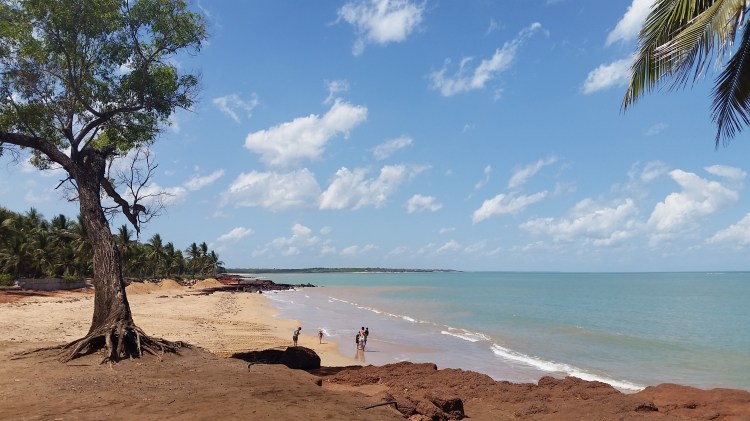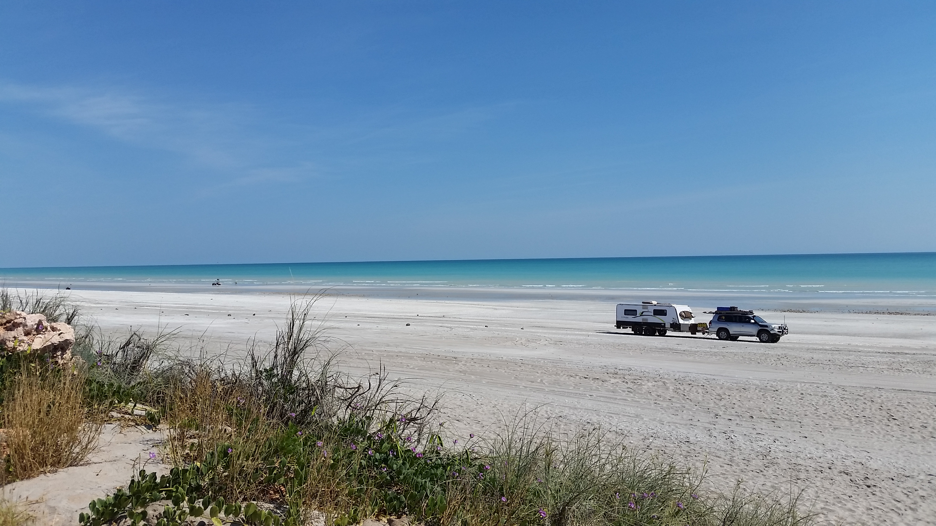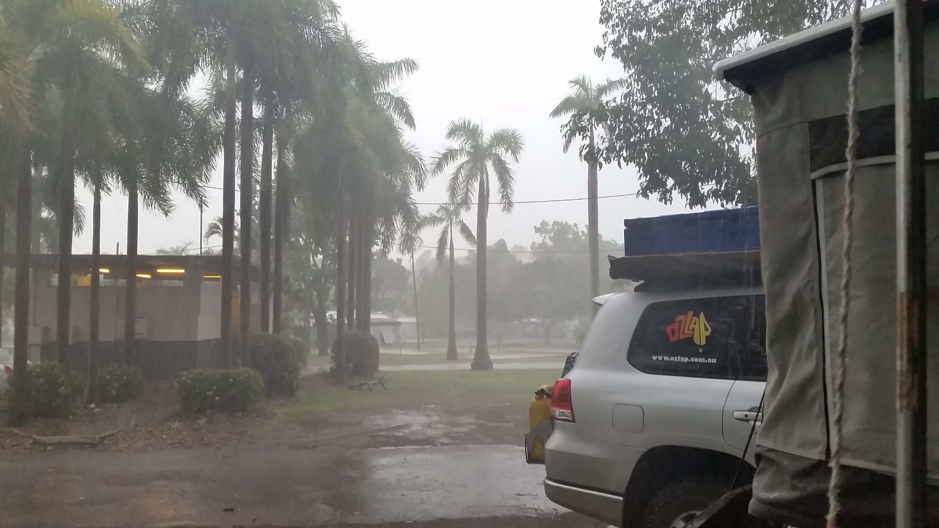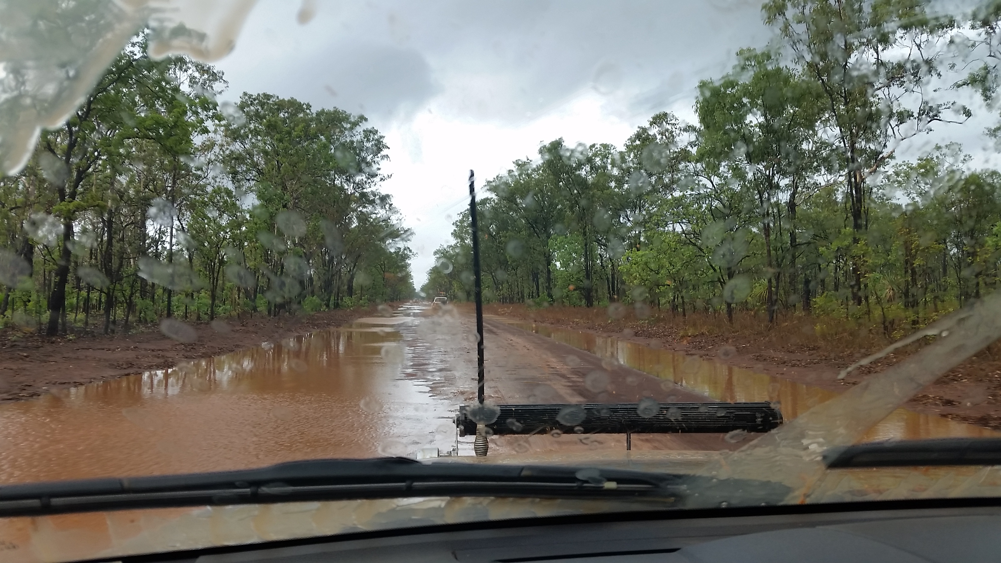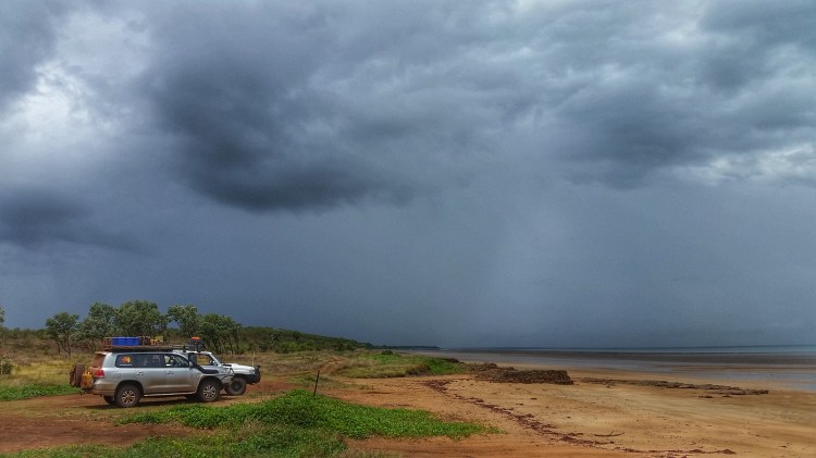From Moreton Telegraph Station we decided to take the short 140km drive east off the PDR to Chili Beach, just north of an Indigenous community of Lockhart. The distance on paper looked quite tame, however looks can be deceiving and finally after 3 hours of gullies, deep water crossings and losing the brakes on the caravan, we arrived at Chili Beach. We had decided to try our luck and not book as we had been told that right on the beach you can get internet reception. So after having a quick walk around we chose a spot that protected us from the wind, set up, then got online to book and pay for the night. That afternon wasn’t too bad, Chili Beach is notorious for being very windy all the time, with a beach that is covered in rubbish from Papua New Guinea, due to the tides, so we had a wander around and a walk along the beach. Just as well, as the rain set in about 5pm that afternoon and did not let up. The poor people who pulled up next to us in a camper trailer struggled through the night and when we awoke early the next morning they were packing up and were back on the road by 6:30am. With the wind and rain settled in for the day and visibility at an all time low, we decided to take a vote about who wanted to stay and who wanted to go. We could handle the wind, but the sideways cold rain was doing our head in keeping us in the van so with a 2 to 4 vote, we packed up and drove the long drive back to the PDR which was made all the more difficult, muddier and wetter due to the overnight rain, thankfully not enough to raise any of the river crossings too much…..