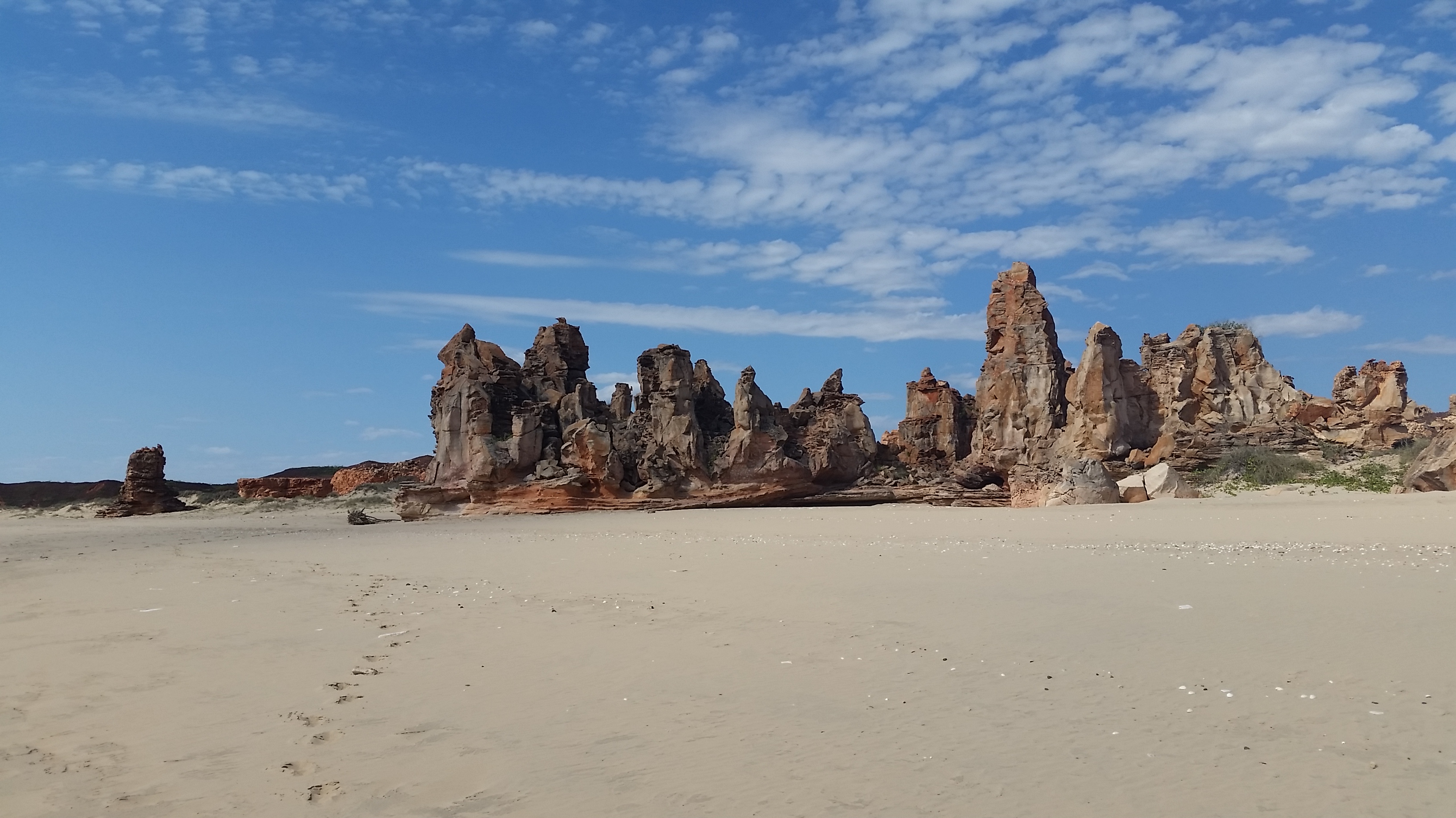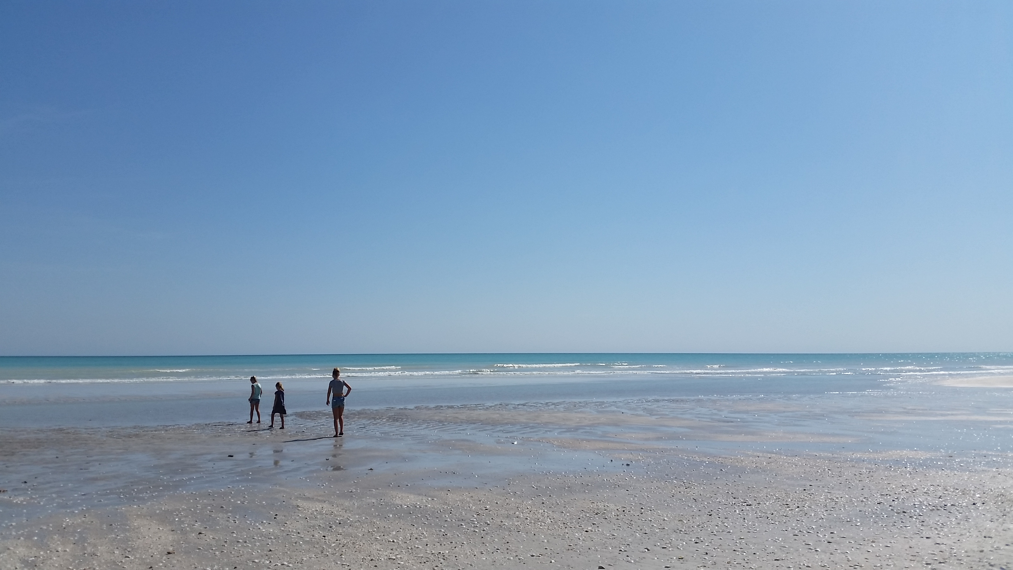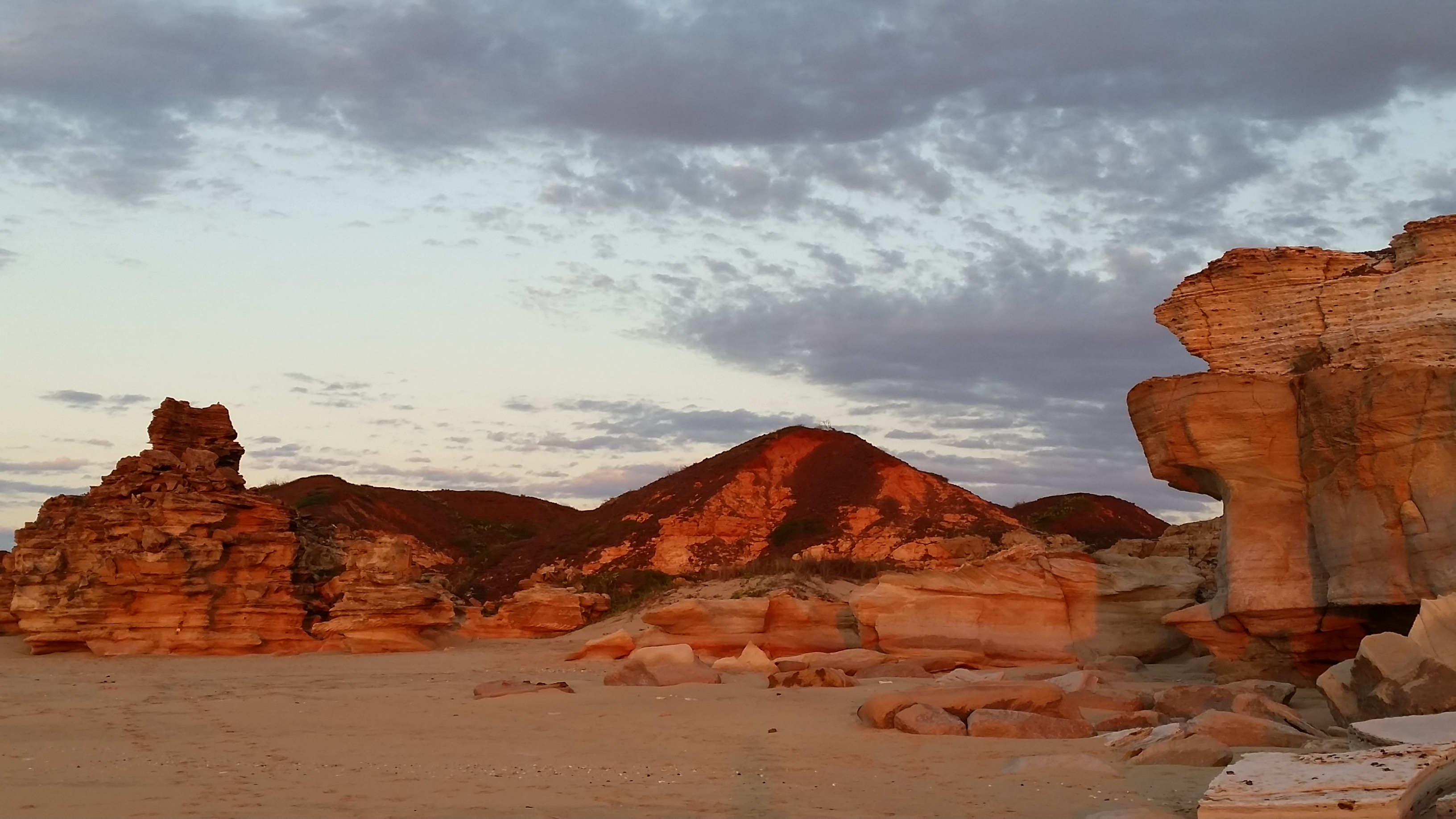 From Moreton Telegraph Station we decided to take the short 140km drive east off the PDR to Chili Beach, just north of an Indigenous community of Lockhart. The distance on paper looked quite tame, however looks can be deceiving and finally after 3 hours of gullies, deep water crossings and losing the brakes on the caravan, we arrived at Chili Beach. We had decided to try our luck and not book as we had been told that right on the beach you can get internet reception. So after having a quick walk around we chose a spot that protected us from the wind, set up, then got online to book and pay for the night. That afternon wasn’t too bad, Chili Beach is notorious for being very windy all the time, with a beach that is covered in rubbish from Papua New Guinea, due to the tides, so we had a wander around and a walk along the beach. Just as well, as the rain set in about 5pm that afternoon and did not let up. The poor people who pulled up next to us in a camper trailer struggled through the night and when we awoke early the next morning they were packing up and were back on the road by 6:30am. With the wind and rain settled in for the day and visibility at an all time low, we decided to take a vote about who wanted to stay and who wanted to go. We could handle the wind, but the sideways cold rain was doing our head in keeping us in the van so with a 2 to 4 vote, we packed up and drove the long drive back to the PDR which was made all the more difficult, muddier and wetter due to the overnight rain, thankfully not enough to raise any of the river crossings too much…..