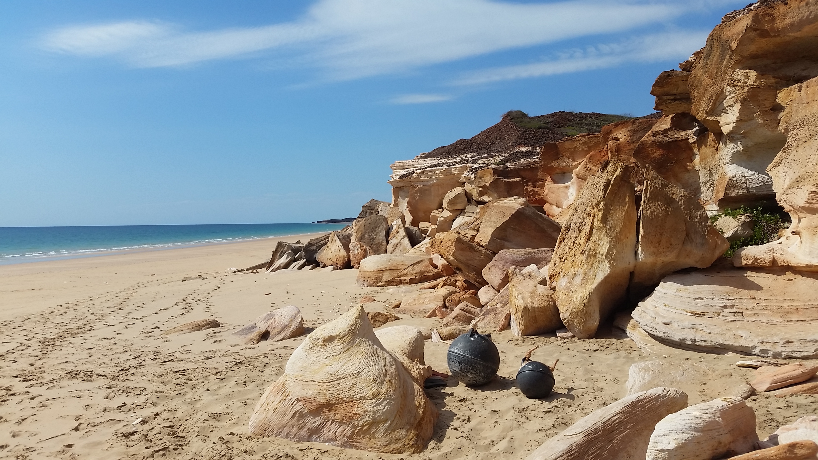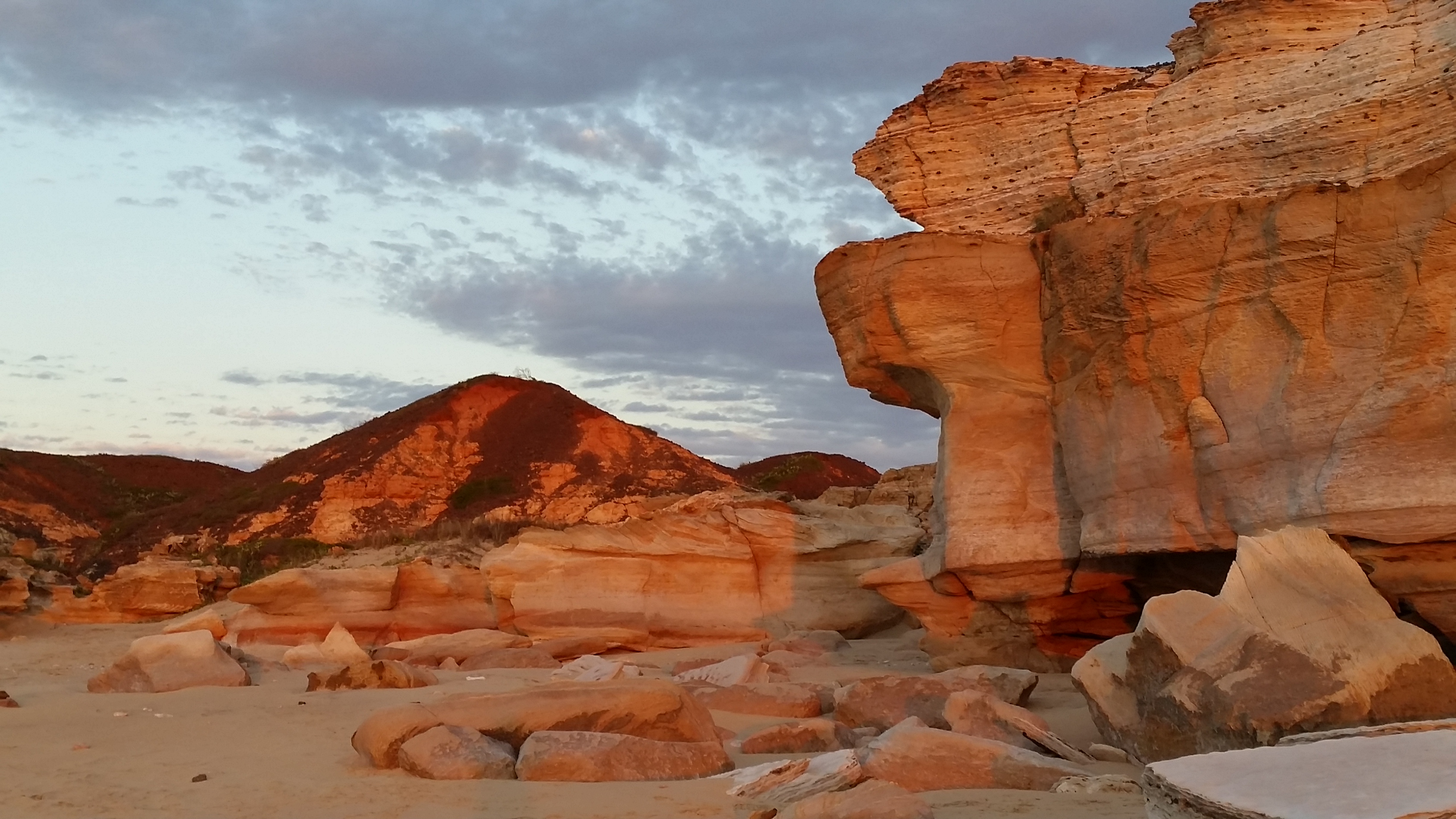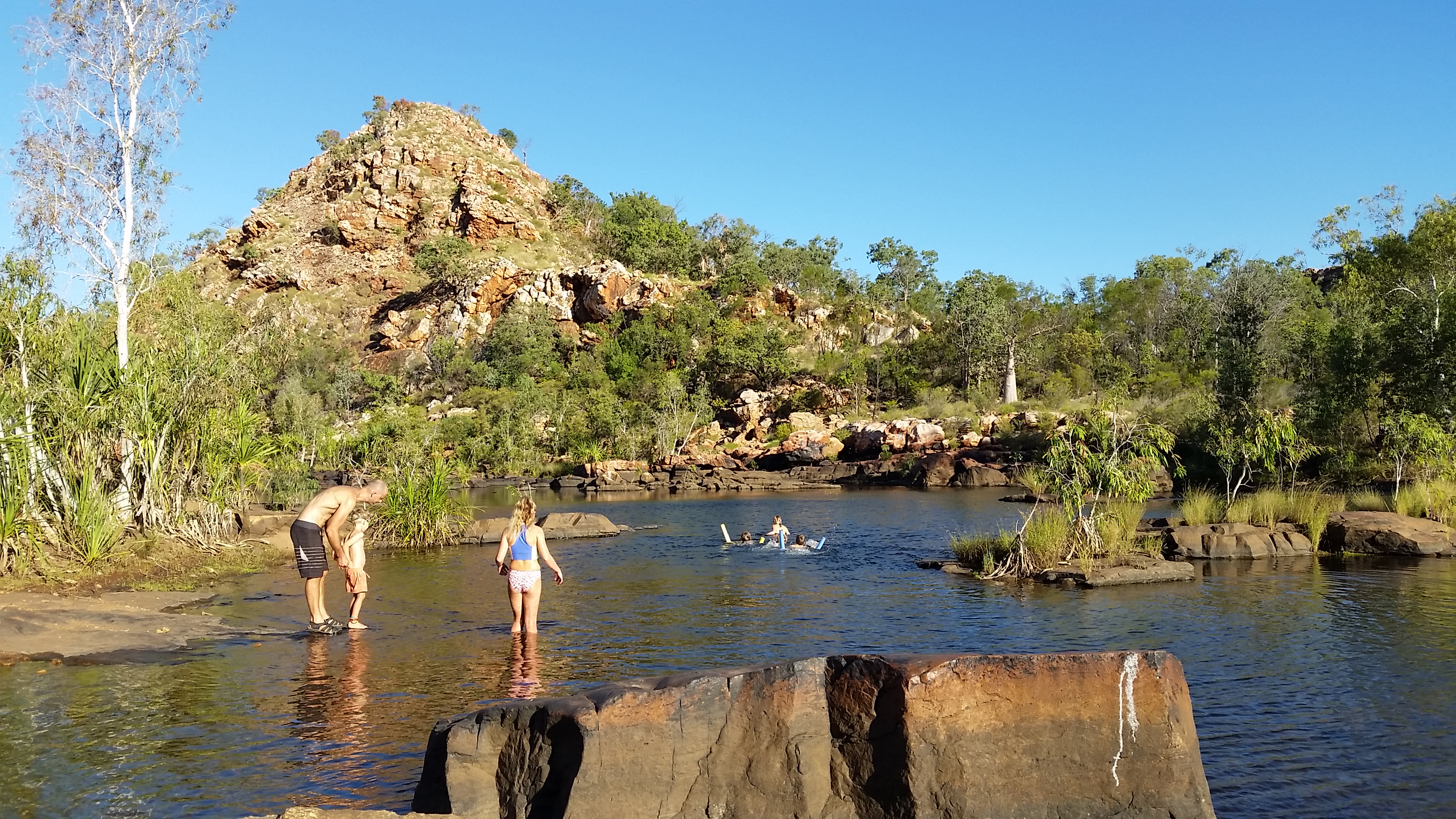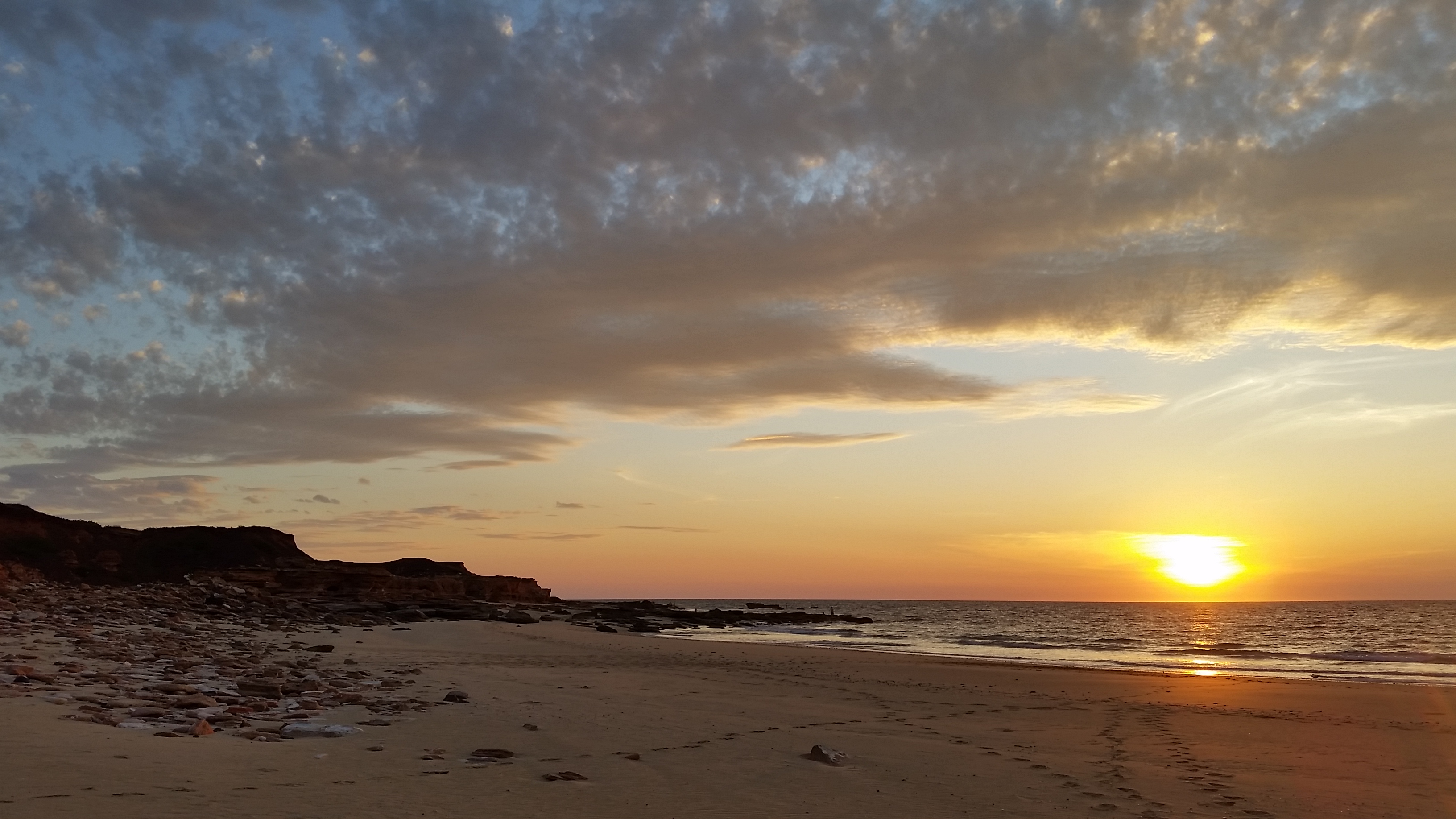 From Moreton Telegraph Station we decided to take the short 140km drive east off the PDR to Chili Beach, just north of an Indigenous community of Lockhart. The distance on paper looked quite tame, however looks can be deceiving and finally after 3 hours of gullies, deep water crossings and losing the brakes on the caravan, we arrived at Chili Beach. We had decided to try our luck and not book as we had been told that right on the beach you can get internet reception. So after having a quick walk around we chose a spot that protected us from the wind, set up, then got online to book and pay for the night. That afternon wasn’t too bad, Chili Beach is notorious for being very windy all the time, with a beach that is covered in rubbish from Papua New Guinea, due to the tides, so we had a wander around and a walk along the beach. Just as well, as the rain set in about 5pm that afternoon and did not let up. The poor people who pulled up next to us in a camper trailer struggled through the night and when we awoke early the next morning they were packing up and were back on the road by 6:30am. With the wind and rain settled in for the day and visibility at an all time low, we decided to take a vote about who wanted to stay and who wanted to go. We could handle the wind, but the sideways cold rain was doing our head in keeping us in the van so with a 2 to 4 vote, we packed up and drove the long drive back to the PDR which was made all the more difficult, muddier and wetter due to the overnight rain, thankfully not enough to raise any of the river crossings too much…..