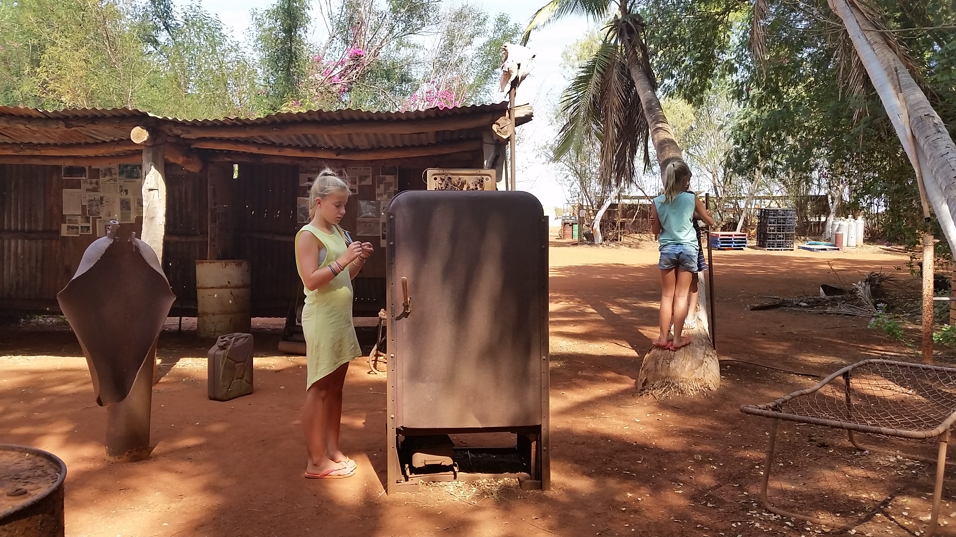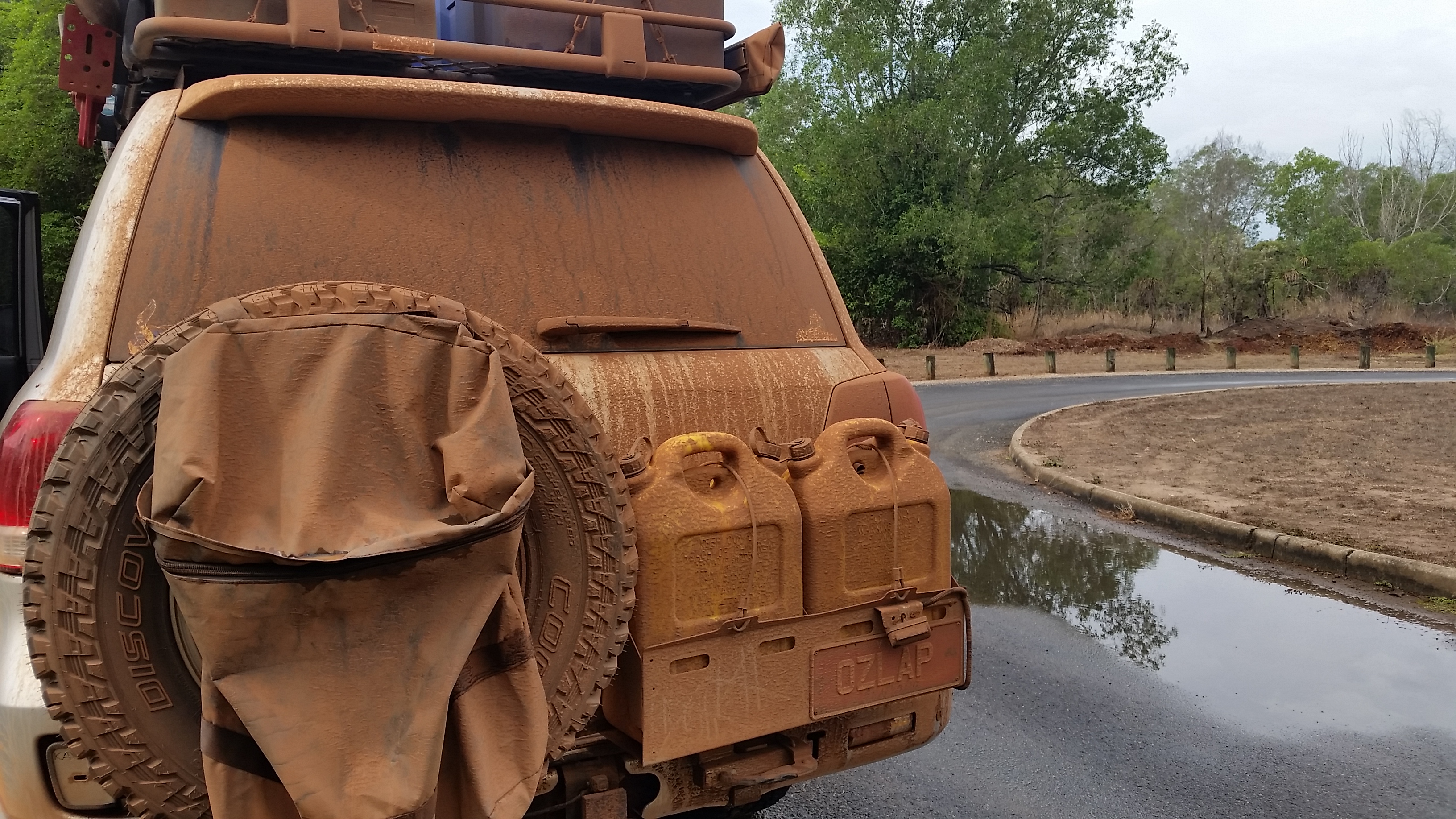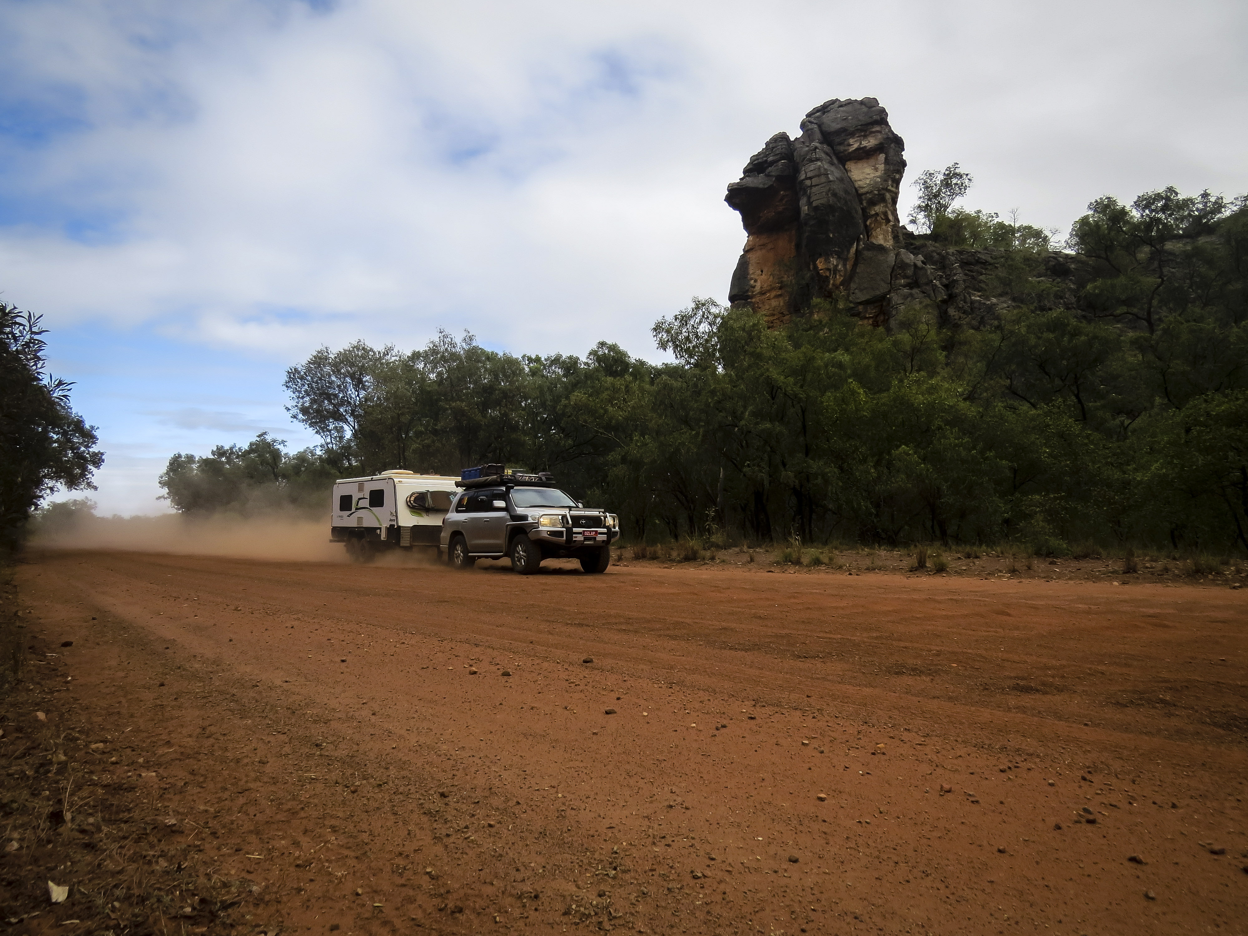 Our final night on our Cape York trip was at Coen freecamp on the Coen river, which is where we had stayed on the way up. Our final day driving the Cape was between Coen and Lakelands and was the worst road we had encountered on this adventure. The 200kms of corrogations were horrendous, we were unable to gain any speed and drive over them as the axle crunching wash outs and bull dust holes left us zig zaging all over the road. Our relief as we drove into Laura, where the bitumen began, was short lived as we discovered that our oven door had rattled off and was lying on the floor, together with half a carton of milk……….