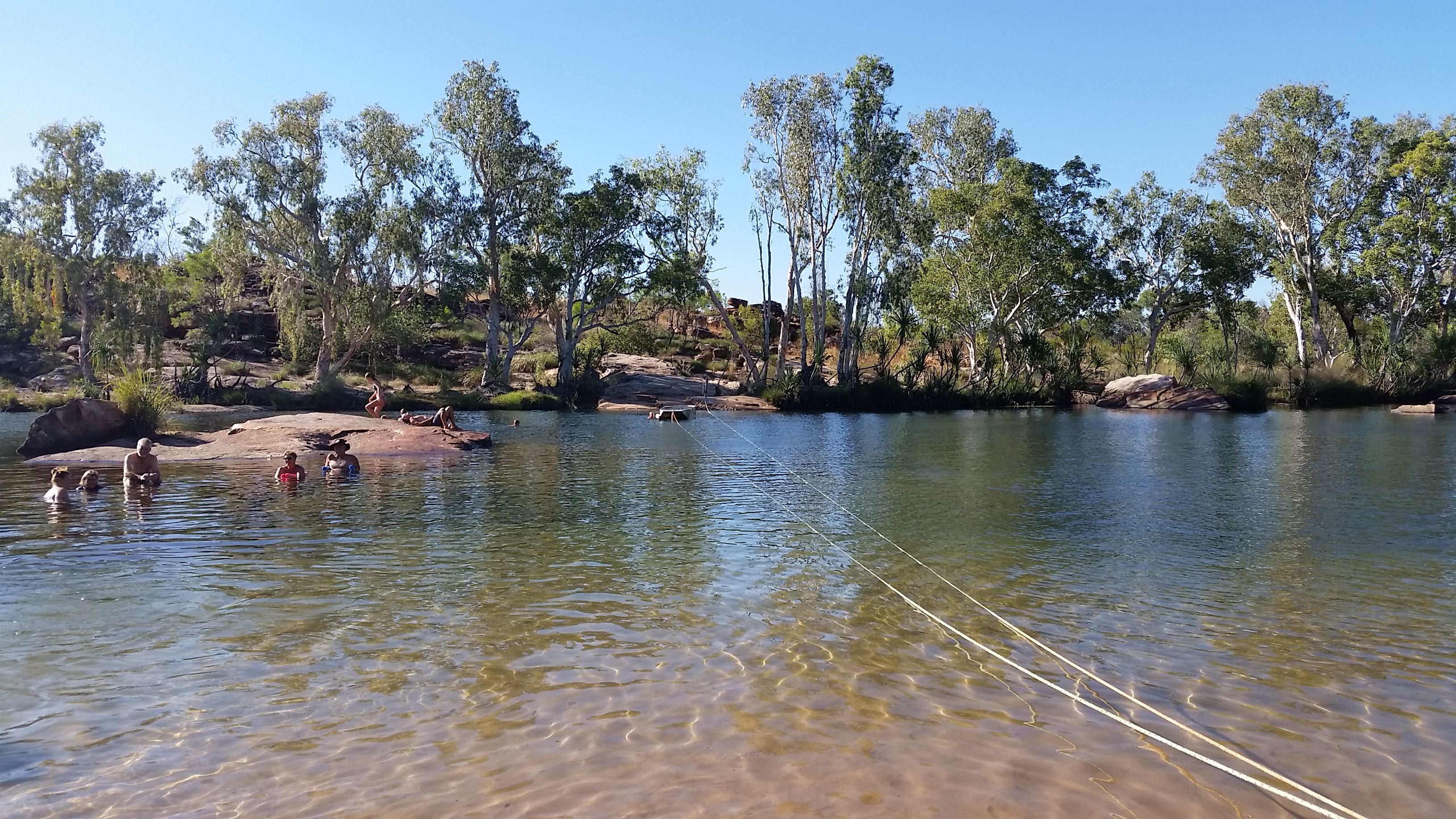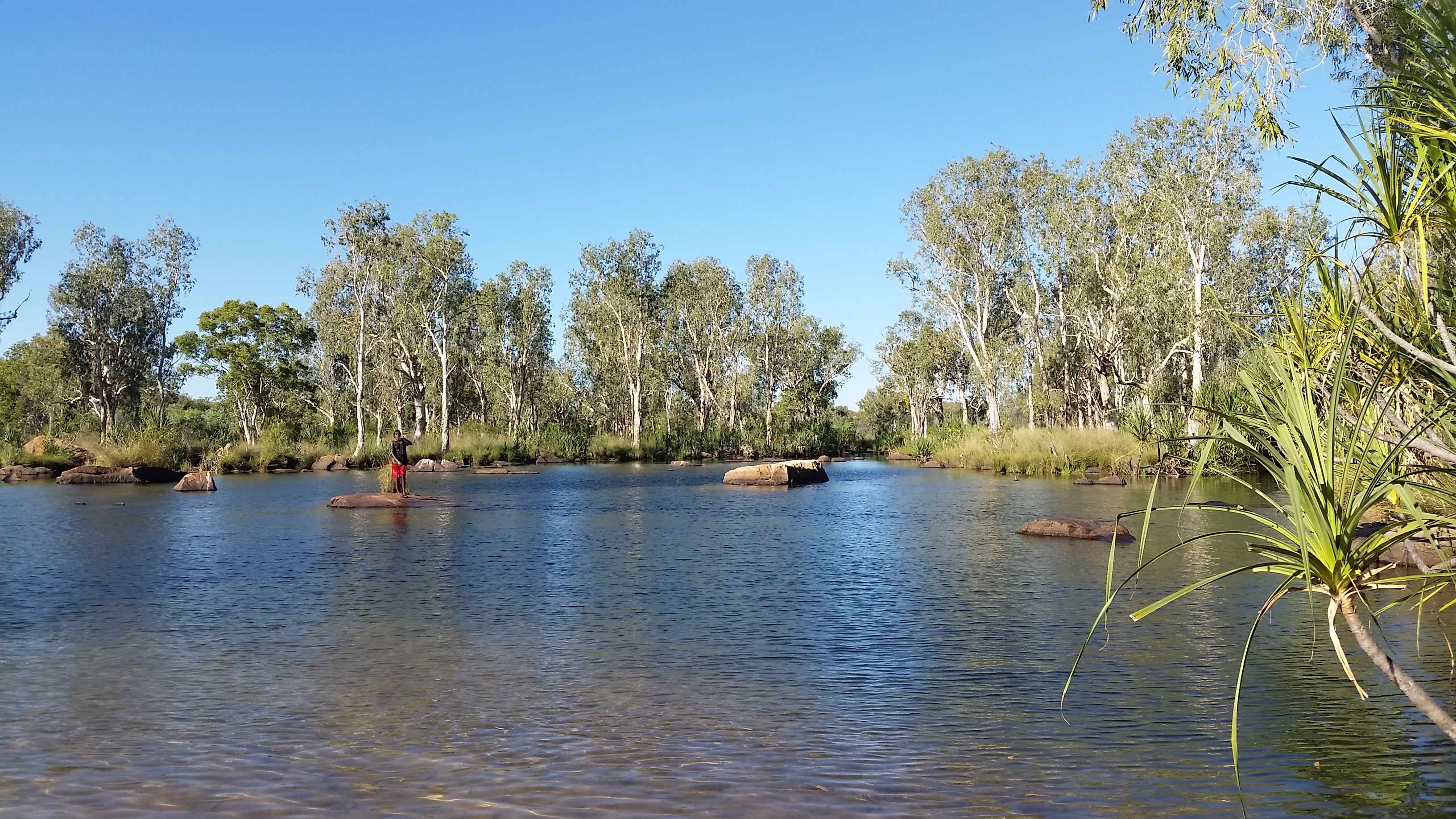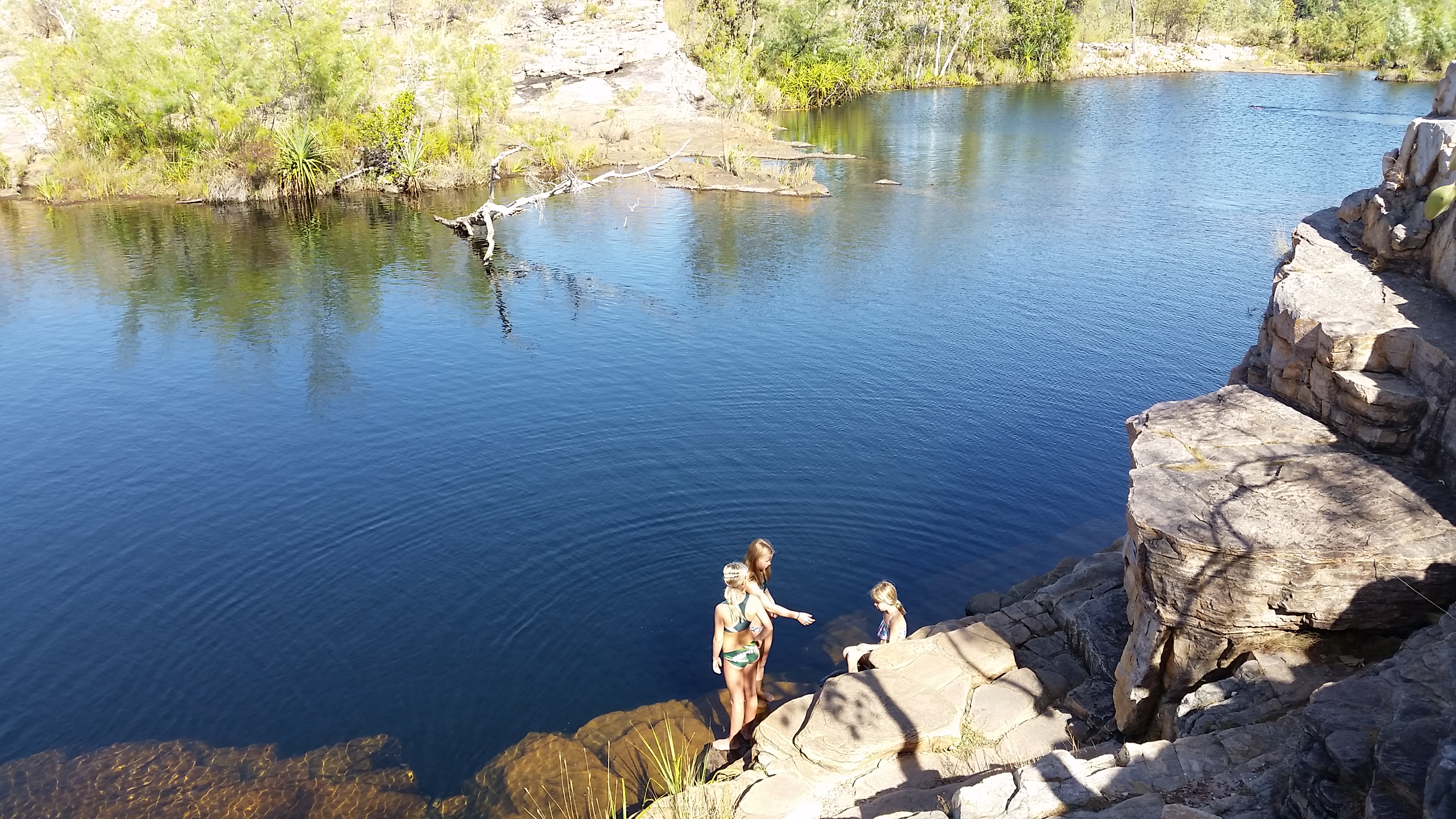 Whilst the bearings weren’t delivered on the same day, I think we did pretty well getting them the next morning, which allowed Nik to replace the remaining 3 wheel bearings, good as new!!! Once we were all good to go, it was voted on to start heading south again, I think after 2 weeks the girls were sick of being so close to the ocean and not being to swim in it, although we did spot a few crocs lazily swimming along the shoreline early one morning. From Seisia we drove back the way we came, stopping in at Moreton Telegraph Station for a pleasant overnight camp. Moreton Telegraph Station is a station situated on the Wenlock River and is purely focused on tourism, opening for the dry season each year. Whilst here Nik spent the afteroon fishing for Barramundi, whilst keeping a close eye out for crocs, we were also luck enough to spot a Spotted Cuscus. The Spotted Cuscus is cousins of the possum and is found in Papua New Guinea and the far north region of Queensland’s Cape York Peninsula, it is a spotted orange in color, with a face that looks very similar to a sloth.