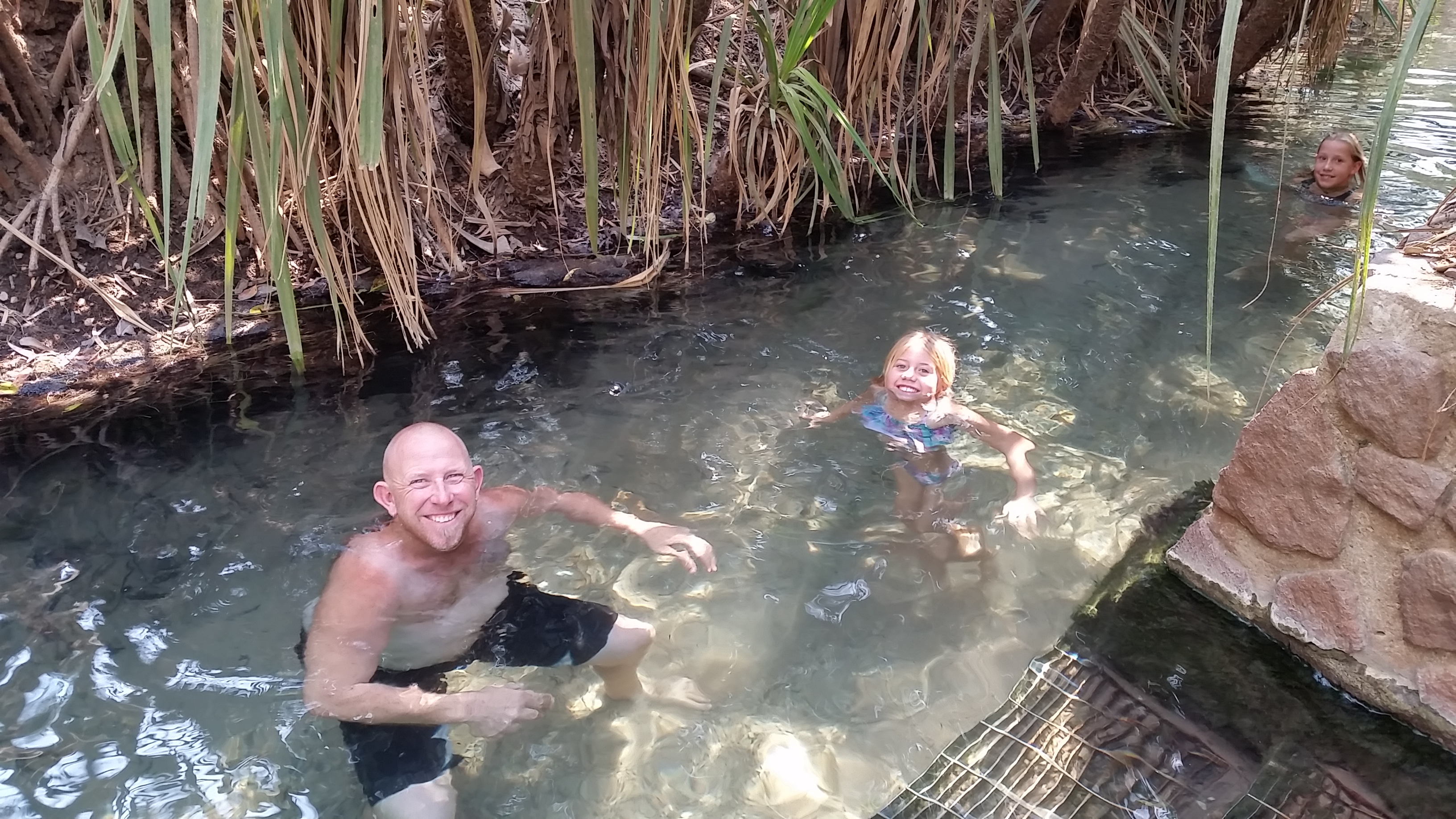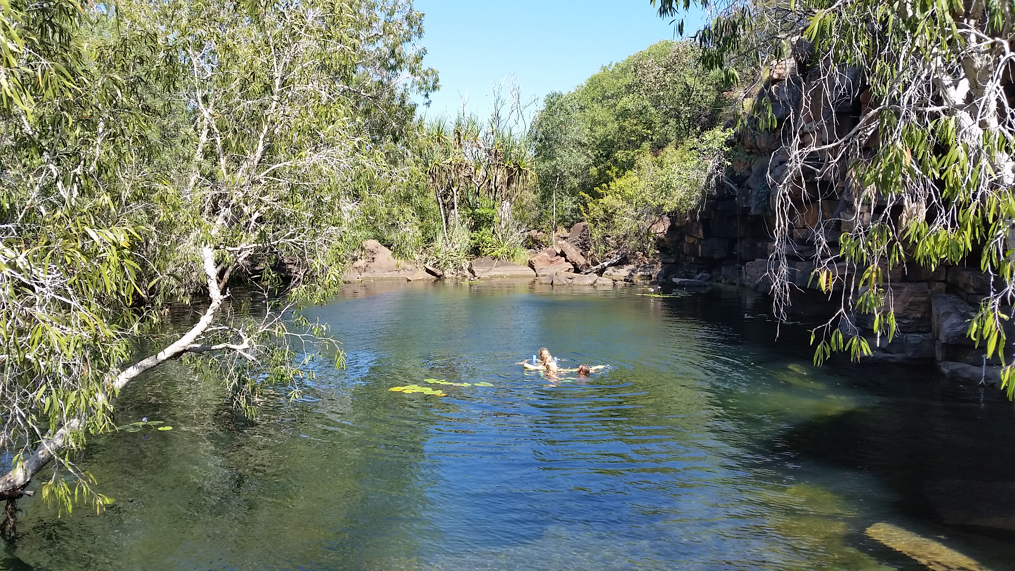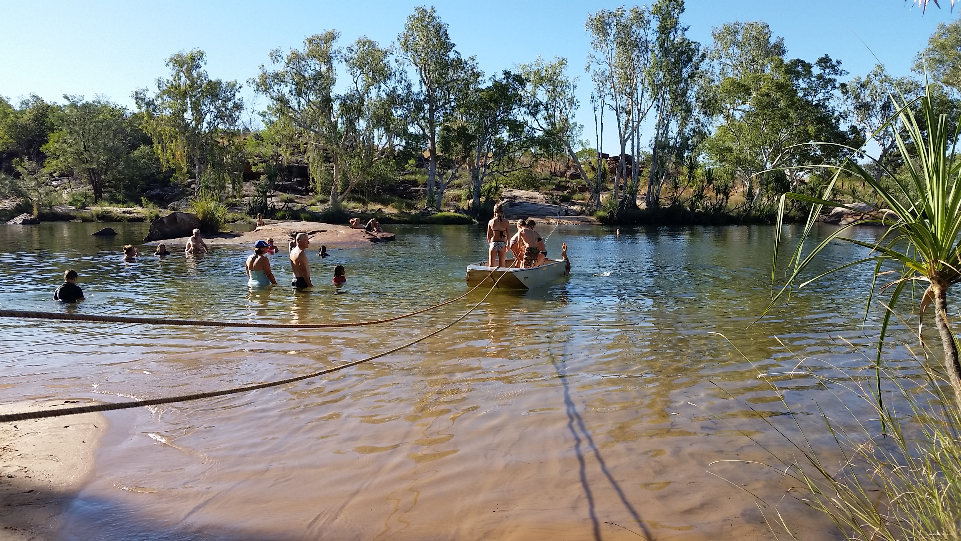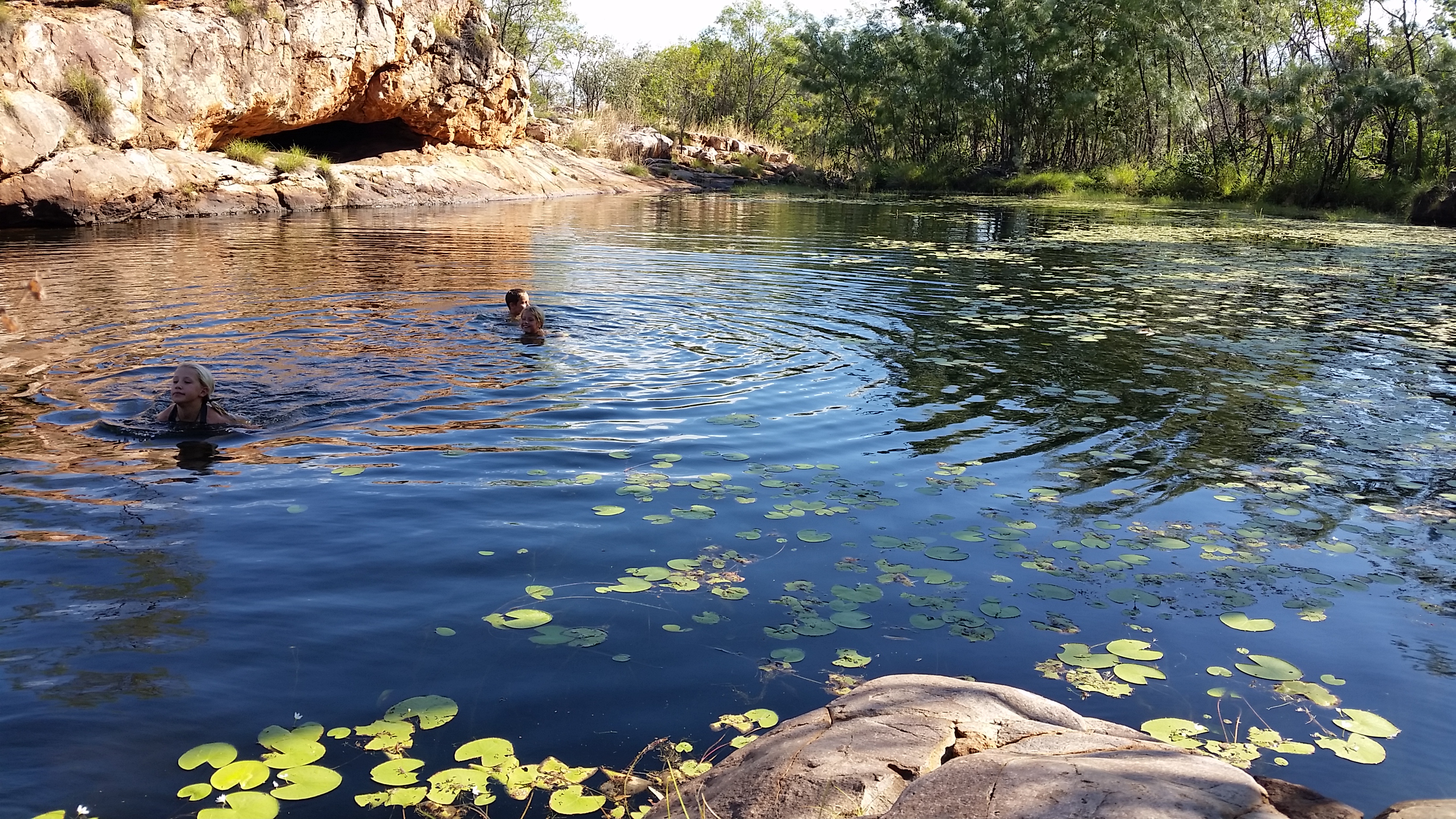 Whilst the bearings weren’t delivered on the same day, I think we did pretty well getting them the next morning, which allowed Nik to replace the remaining 3 wheel bearings, good as new!!! Once we were all good to go, it was voted on to start heading south again, I think after 2 weeks the girls were sick of being so close to the ocean and not being to swim in it, although we did spot a few crocs lazily swimming along the shoreline early one morning. From Seisia we drove back the way we came, stopping in at Moreton Telegraph Station for a pleasant overnight camp. Moreton Telegraph Station is a station situated on the Wenlock River and is purely focused on tourism, opening for the dry season each year. Whilst here Nik spent the afteroon fishing for Barramundi, whilst keeping a close eye out for crocs, we were also luck enough to spot a Spotted Cuscus. The Spotted Cuscus is cousins of the possum and is found in Papua New Guinea and the far north region of Queensland’s Cape York Peninsula, it is a spotted orange in color, with a face that looks very similar to a sloth.