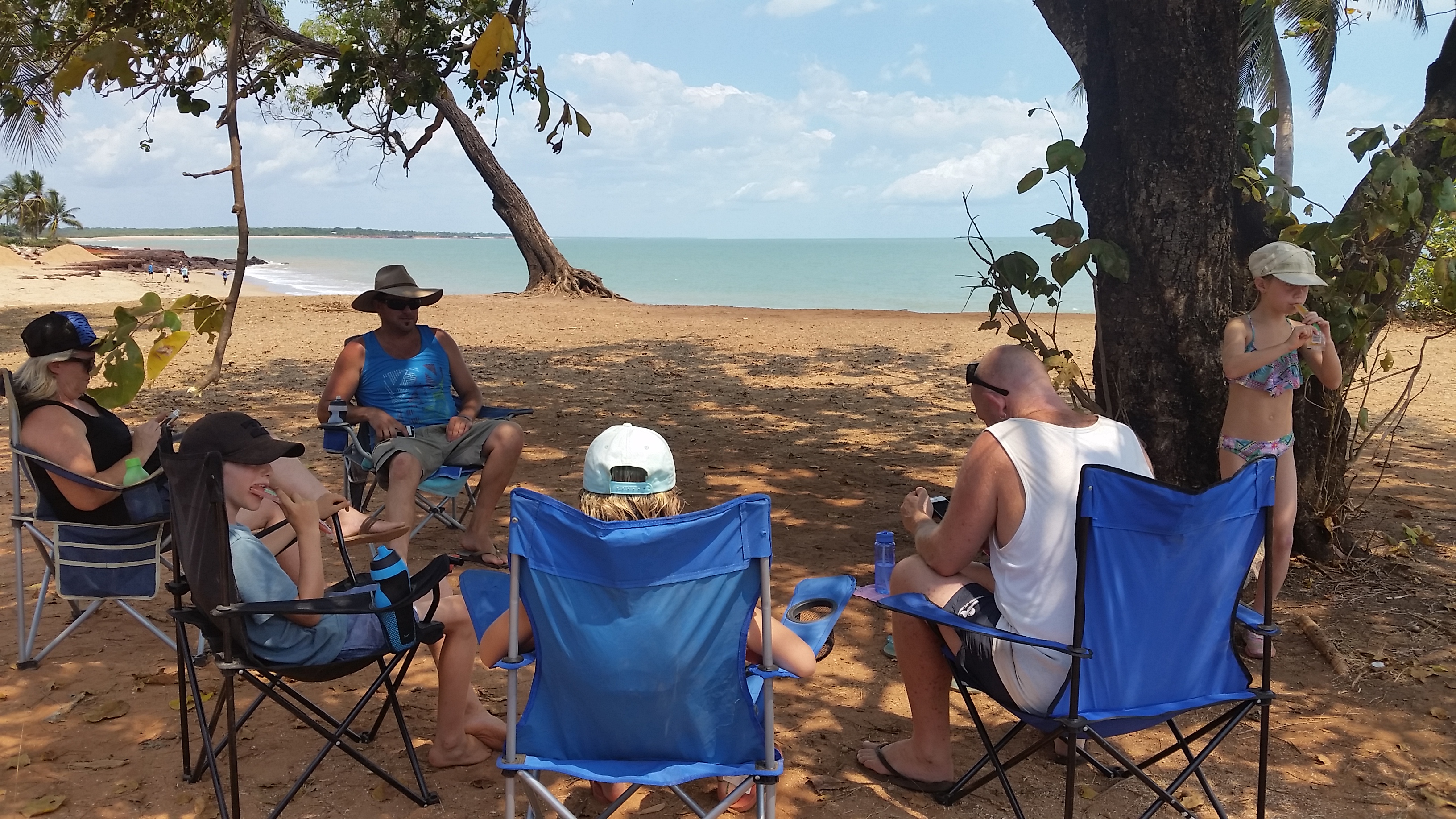 From the ferry it is only a further 50km drive to get to the main town of Bamaga, passing through both Injinoo and Umagico. We headed to the Seisia Caravan Park, where we booked in for a few days to power back up and refill the water tanks. We ended up scoring a nice spot with a shelter just opposite the beach, however I’m sure the girls are getting fed up, as its like we are teasing them as they are not allowed in the water. The next morning while sitting on the beach enjoying a coffee, we spotted a few crocs about 20 metres off the shore, they were casually cruising the beach searching for some fish for breakfast….